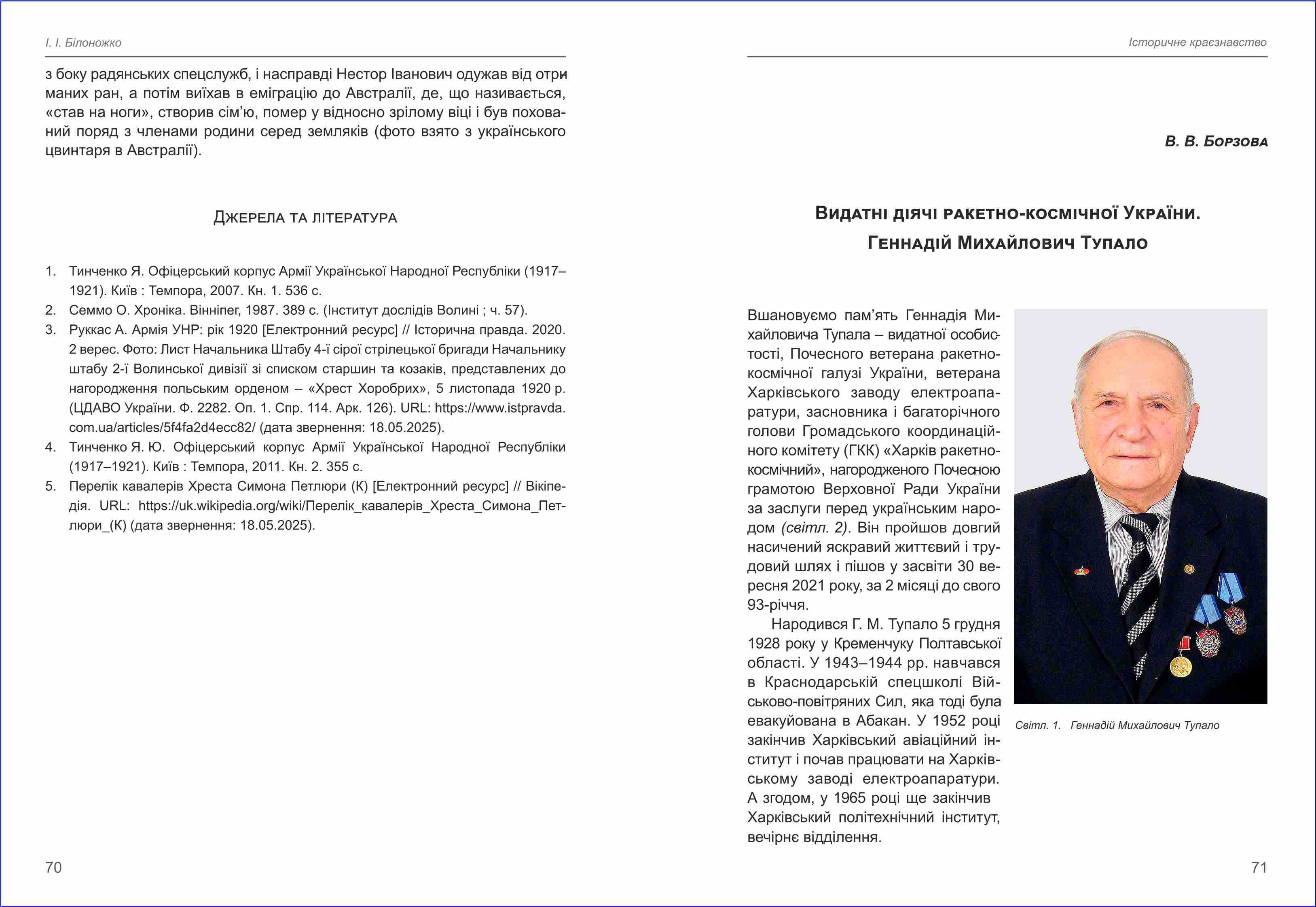 | Бібліографія: | Борзова В. В. Видатні діячі ракетно-космічної України. Геннадій Михайлович Тупало . Культурна спадщина Слобожанщини: зб. наук. ст. Число 57, Харків : Курсор, 2025. C. 71–80 , іл. |