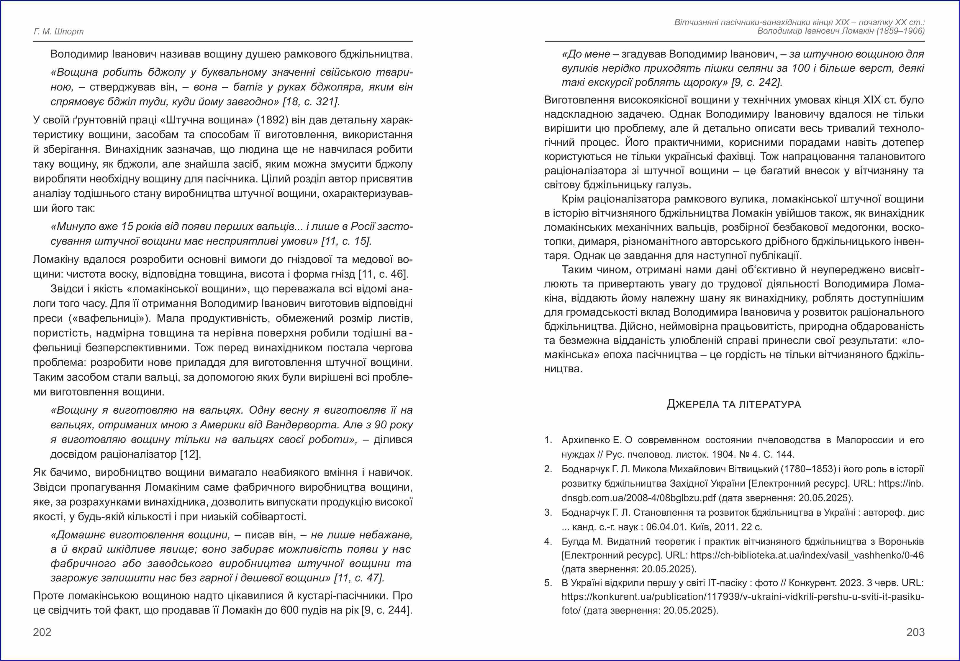 | Бібліографія: | Шпорт Г. М. Вітчизняні пасічники-винахідники кінця XIX – початку XX ст.: Володимир Іванович Ломакін (1859–1906) . Культурна спадщина Слобожанщини: зб. наук. ст. Число 57, Харків : Курсор, 2025. C. 196–204 |