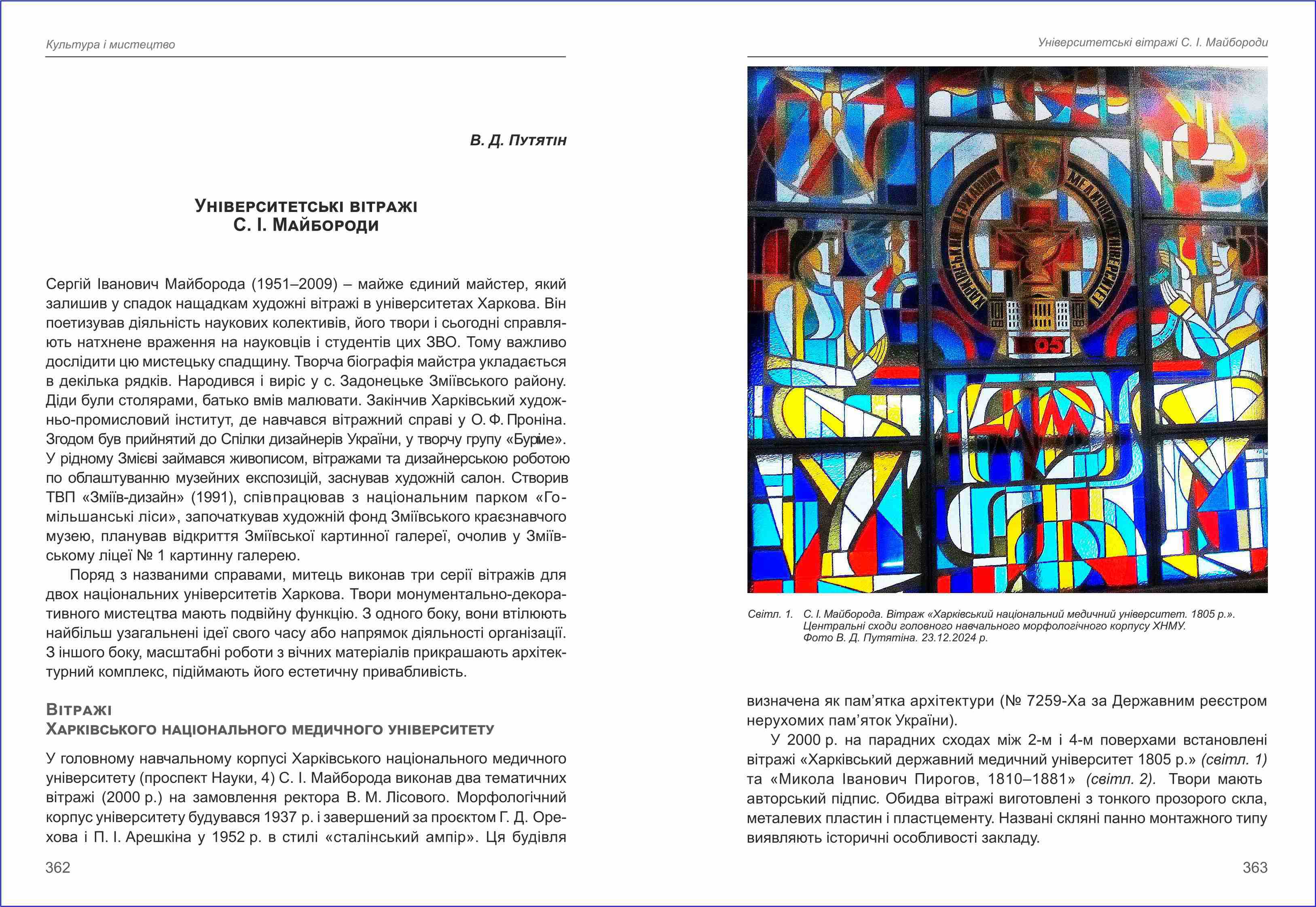 | Назва статті: | Університетські вітражі С. І. Майбороди |