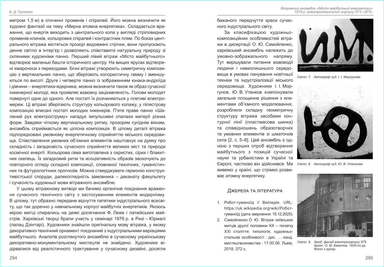 | Бібліографія: | Путятін В. Д. Вітражний ансамбль «Місто майбутньої енергетики» 1978 р. електротехнічного корпусу НТУ «ХПІ». Пам'яткознавчі студії дослідників ХХІ ст.: зб. наук. ст. Випуск X, Харків : Курсор, 2026. C. 290–295 , іл. |
