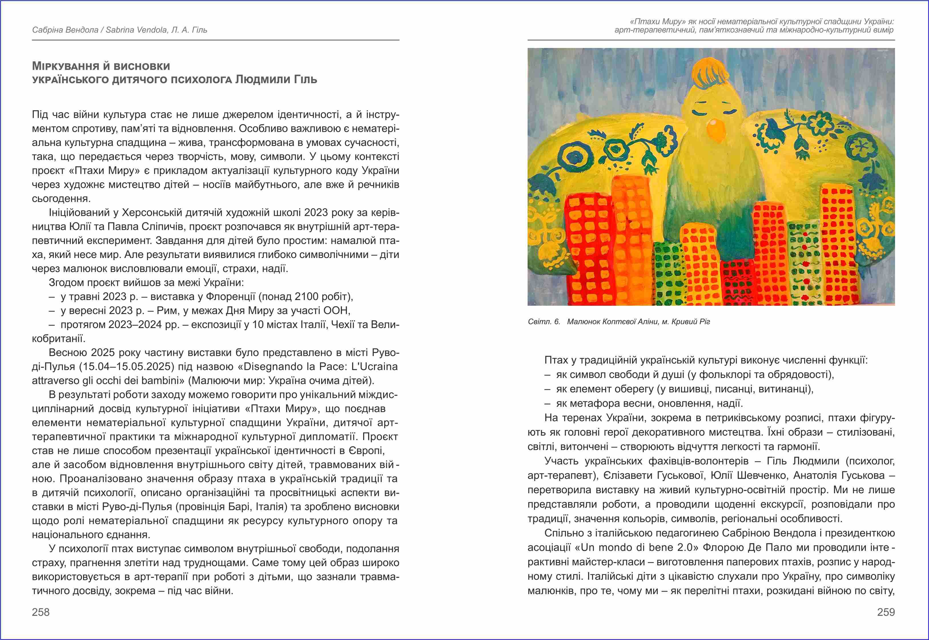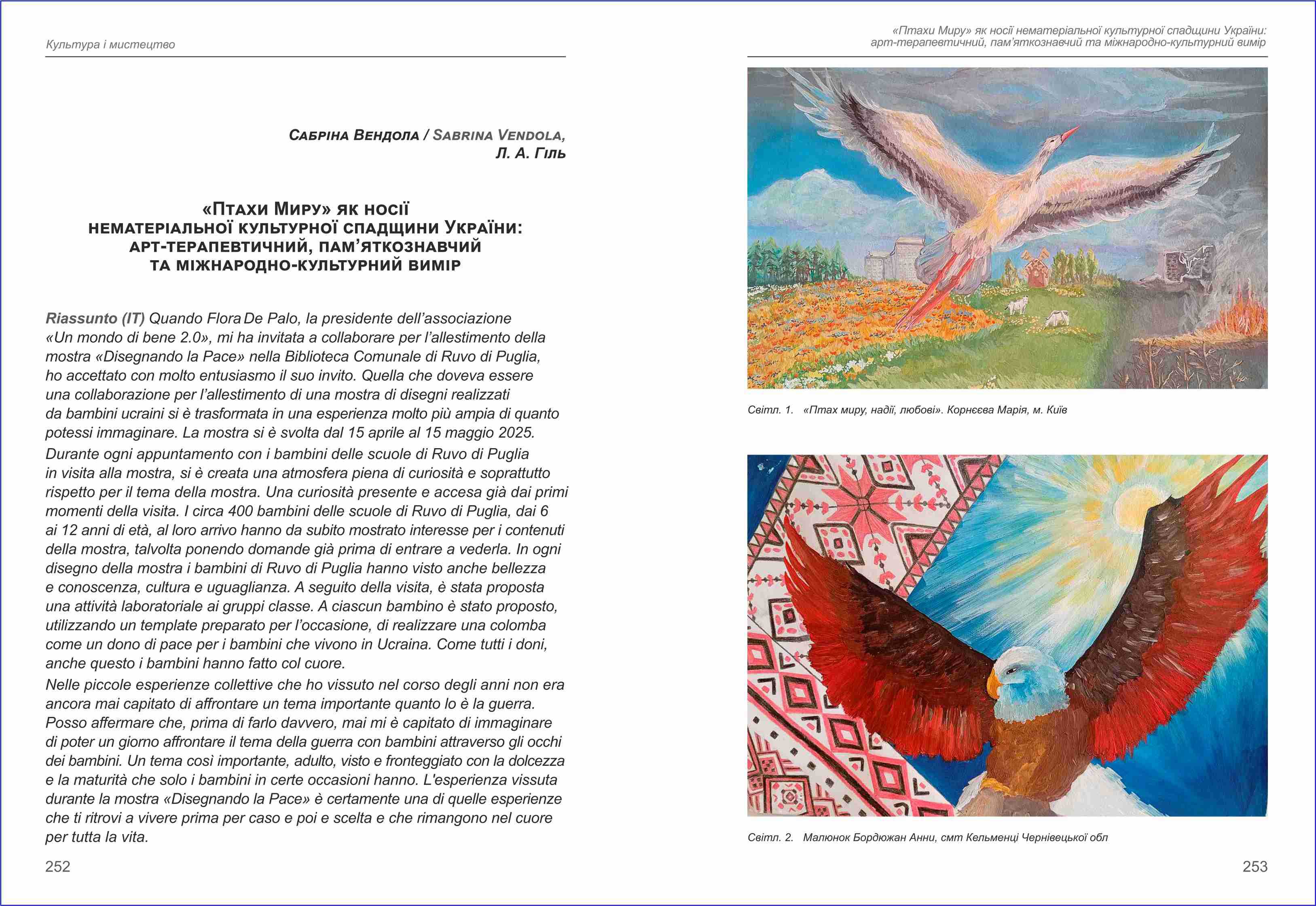 Вендола / Vendola С., Гіль Л. А. «Птахи Миру» як носії нематеріальної культурної спадщини України: арт-терапевтичний, пам’яткознавчий та міжнародно-культурний вимір