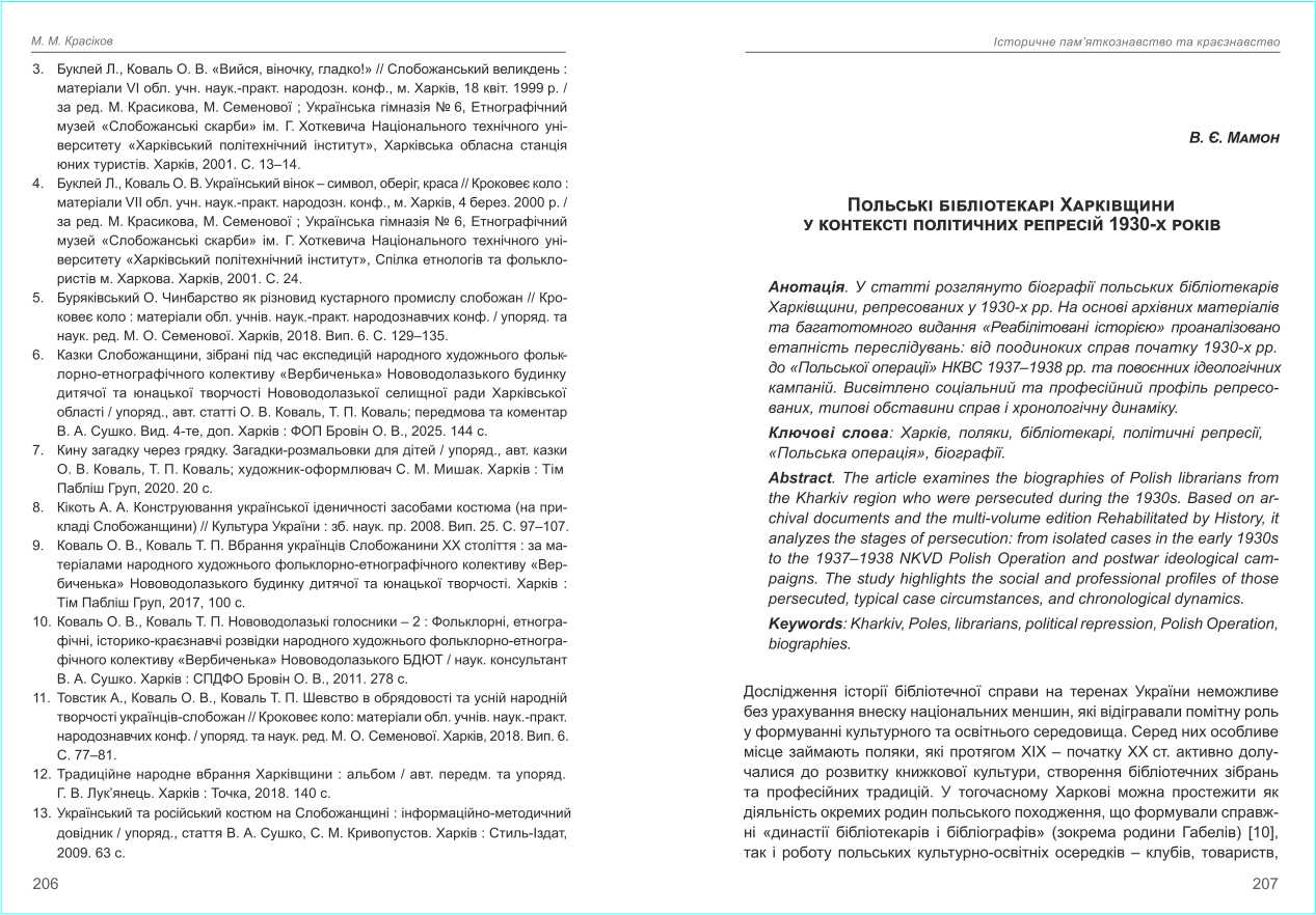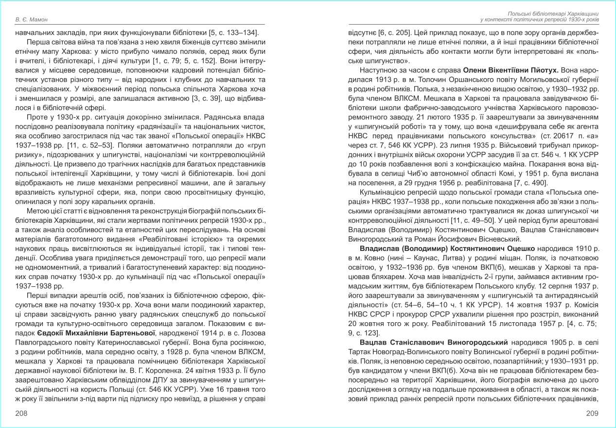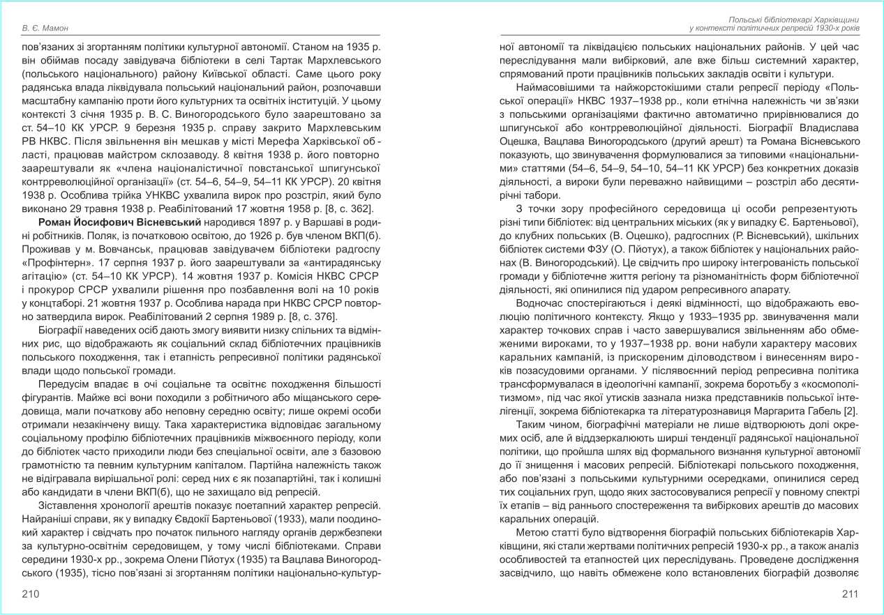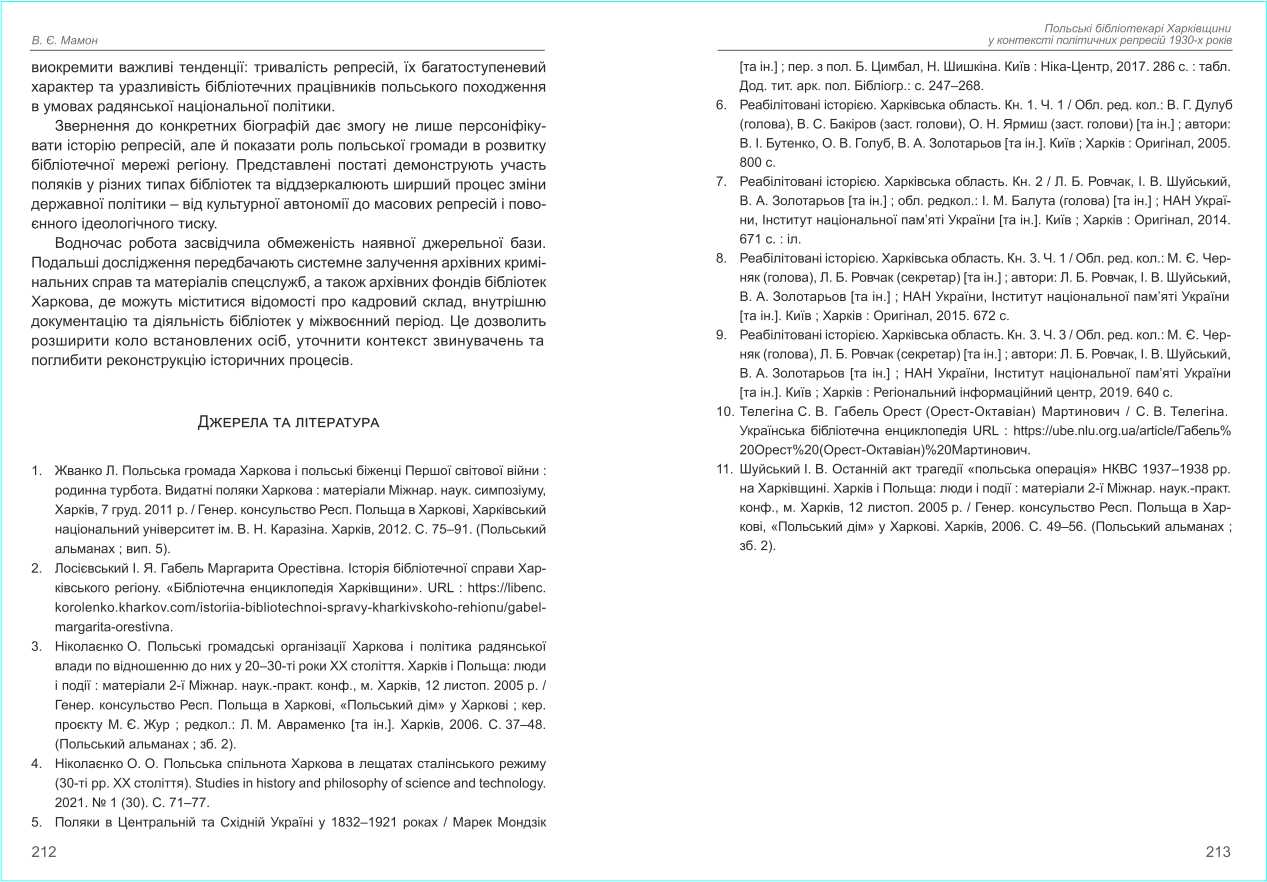 Мамон В. Є. Польські бібліотекарі Харківщини у контексті політичних репресій 1930-х років