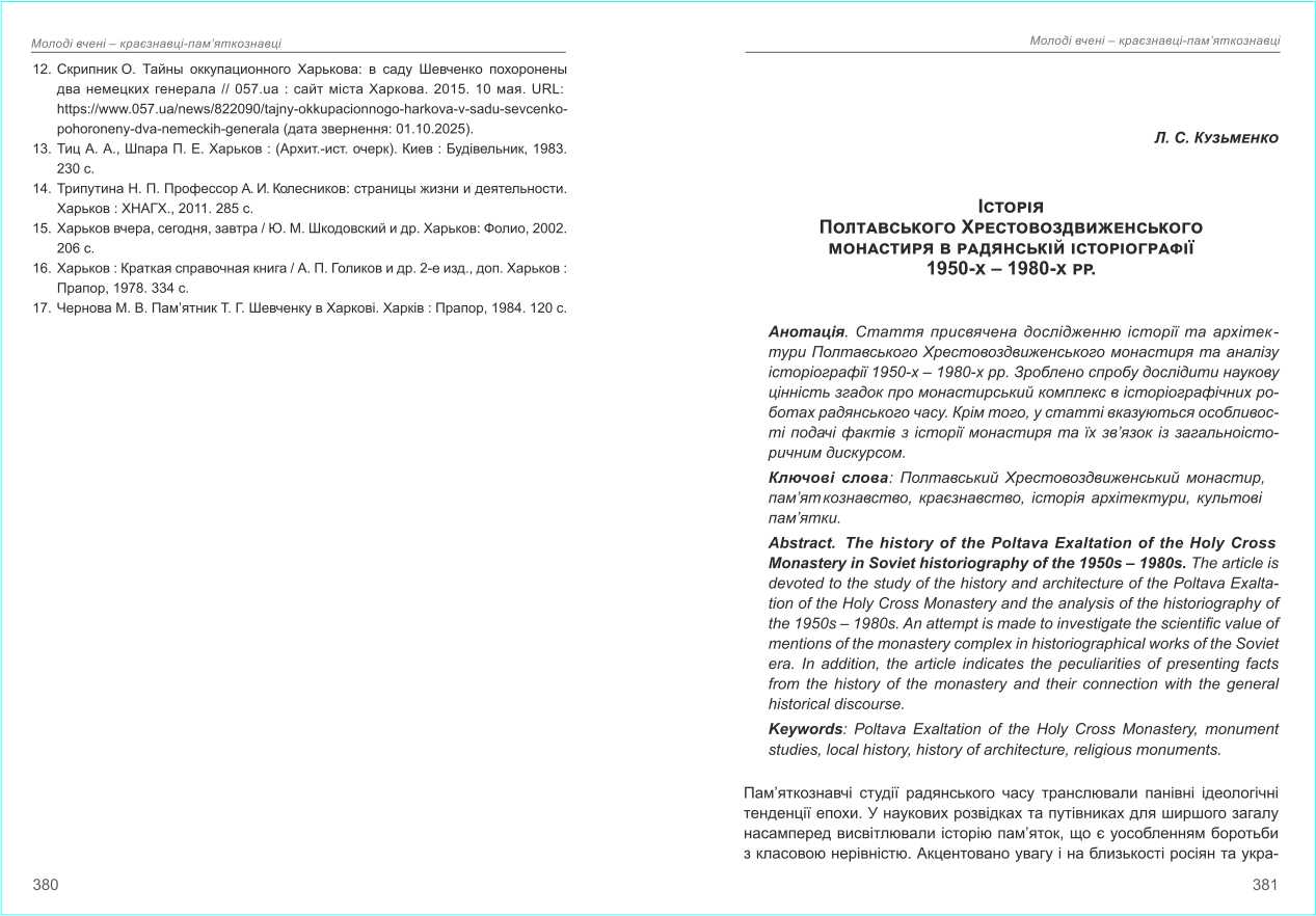 Кузьменко Л. С. Історія Полтавського Хрестовоздвиженського монастиря в радянській історіографії 1950-х – 1980-х рр.