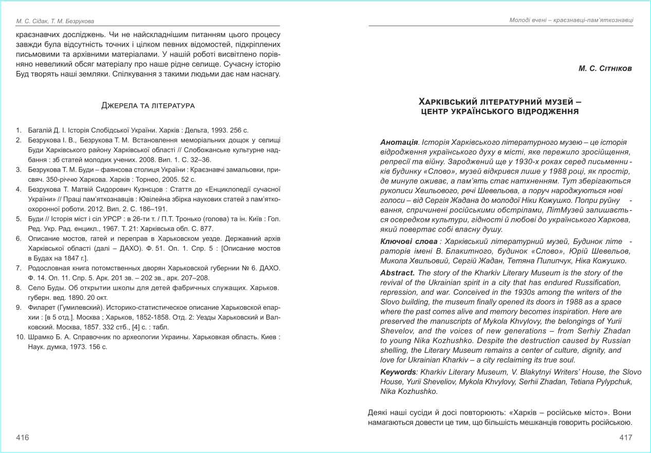 Безрукова Т. М., Сідак М. С. Вивчення технічної спадщини ХІХ ст. селища Буди Харківського району Харківської області