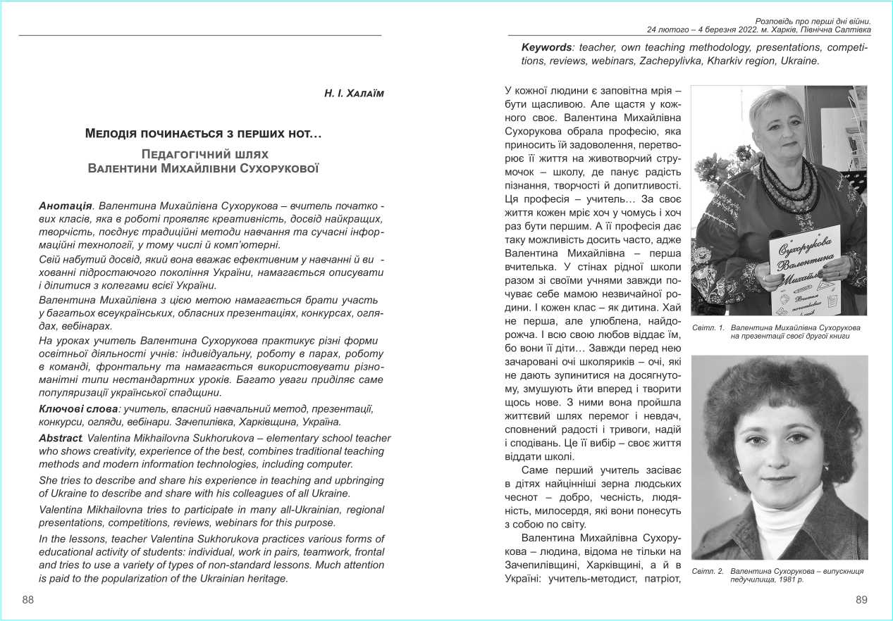 Халаїм Н. І. Мелодія починається з перших нот… Педагогічний шлях Валентини Михайлівни Сухорукової