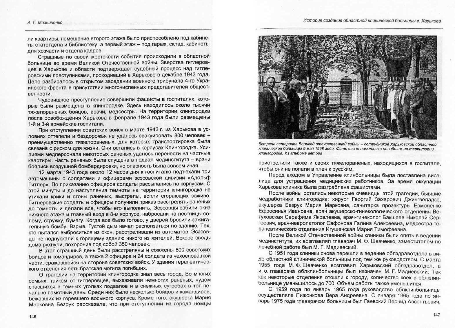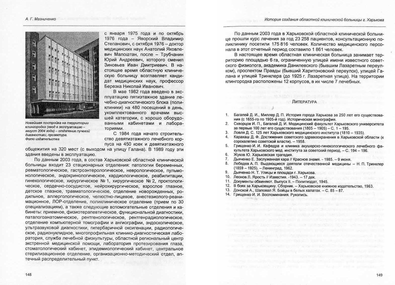 | Бібліографія: | Мазниченко Г. Г. История создания областной клинической больницы г. Харькова. Культурна спадщина Слобожанщини: зб. наук. ст. Збірка 11, Харків : Курсор, 2004. C. 138–149 , іл. |