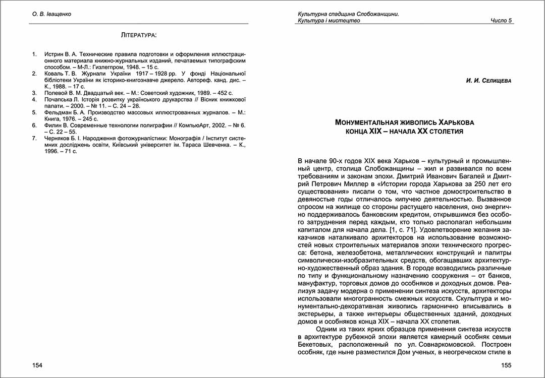 Селищева І. І. Монументальная живопись Харькова конца XIX - начала XX столетия.