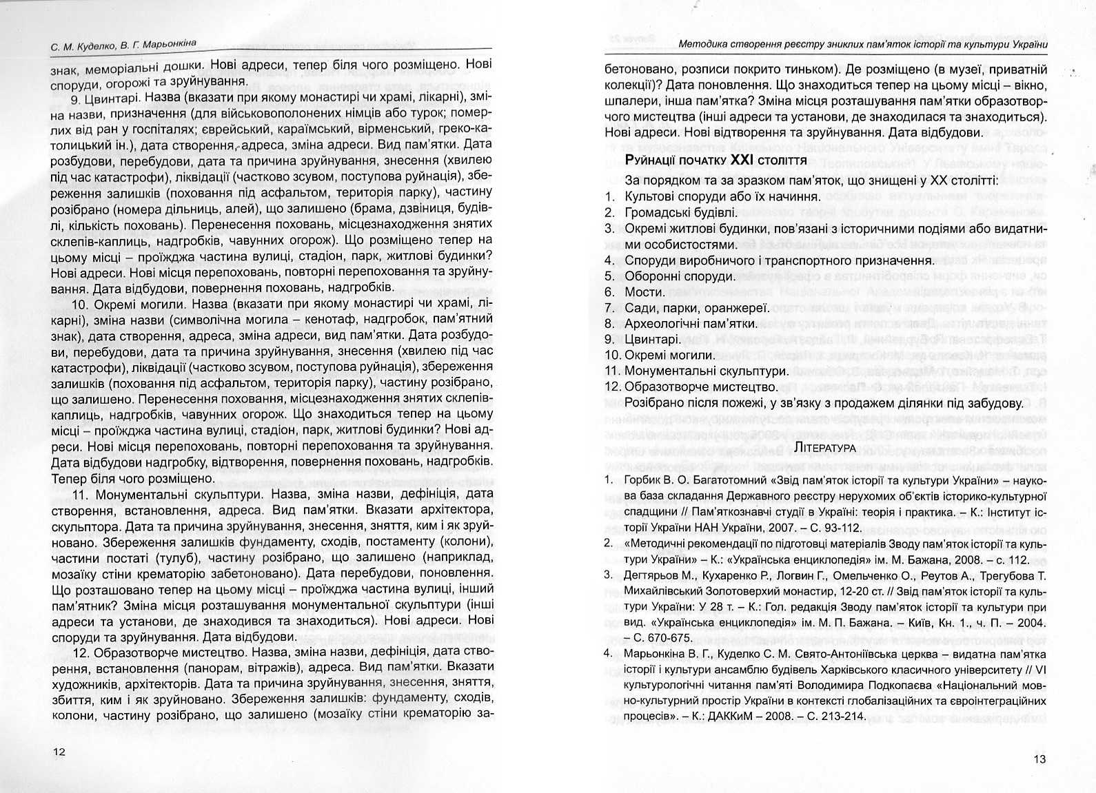 | Бібліографія: | Куделко С. М., Марьонкіна В. Г. Методика створення реєстру зниклих пам'яток історії та культури України (з досвіту пам'яткознавців). Культурна спадщина Слобожанщини: зб. наук. ст. Число 25, Харків : Курсор, 2011. C. 9–13 |