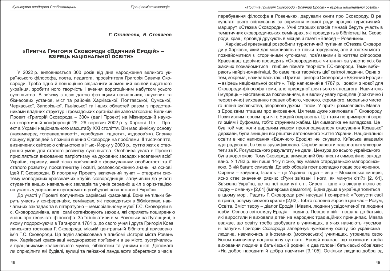 | Назва статті: | Притча Григорія Сковороди "Вдячний Еродій" - взірець національної освіти |