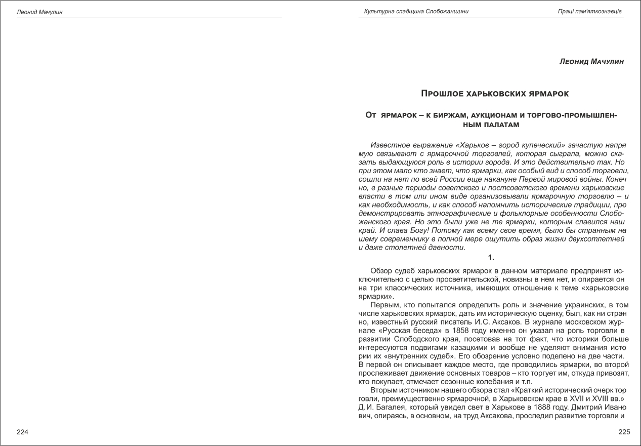 | Бібліографія: | Мачулін Л. І. Прошлое харьковских ярмарок. Праці пам'яткознавців: зб. наук. ст. Випуск II, Харків : Курсор, 2012. C. 225–236 , іл. |