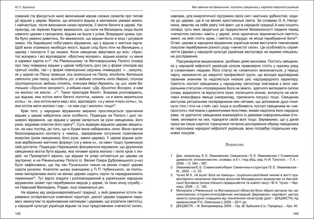 | Бібліографія: | Буйських Ю. С. Між святим та демонічним: постать священника у народній міфології українців. Культурна спадщина Слобожанщини: зб. наук. ст. Число 26, Харків : Курсор, 2012. C. 144–150 |