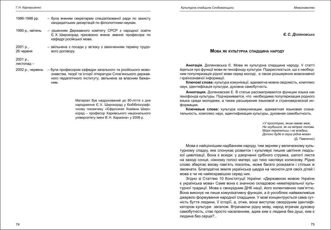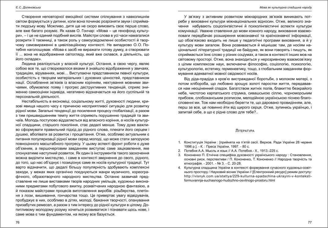 | Бібліографія: | Доляновська Є. С. Мова як культурна спадщина народу. Культурна спадщина Слобожанщини: зб. наук. ст. Число 26, Харків : Курсор, 2012. C. 75–77 |