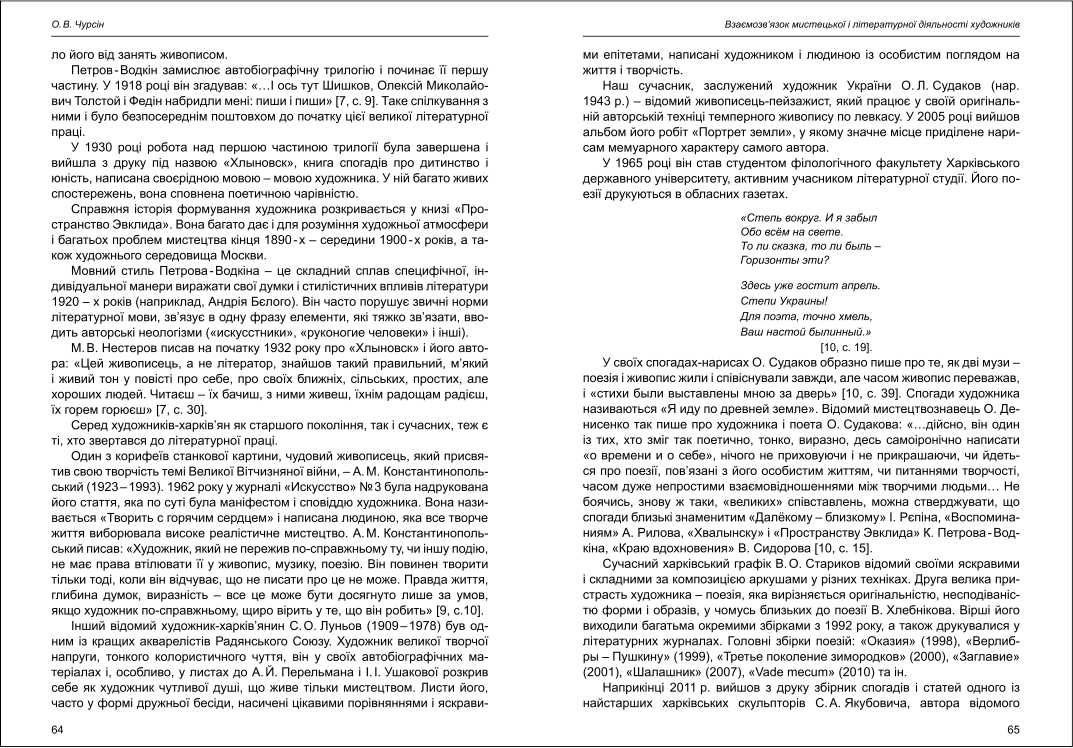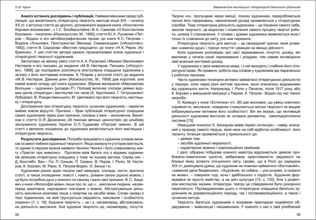 | Бібліографія: | Чурсін О. В. Взаємозв'язок мистецької і літературної діяльності художників. Культурна спадщина Слобожанщини: зб. наук. ст. Число 26, Харків : Курсор, 2012. C. 57–66 |