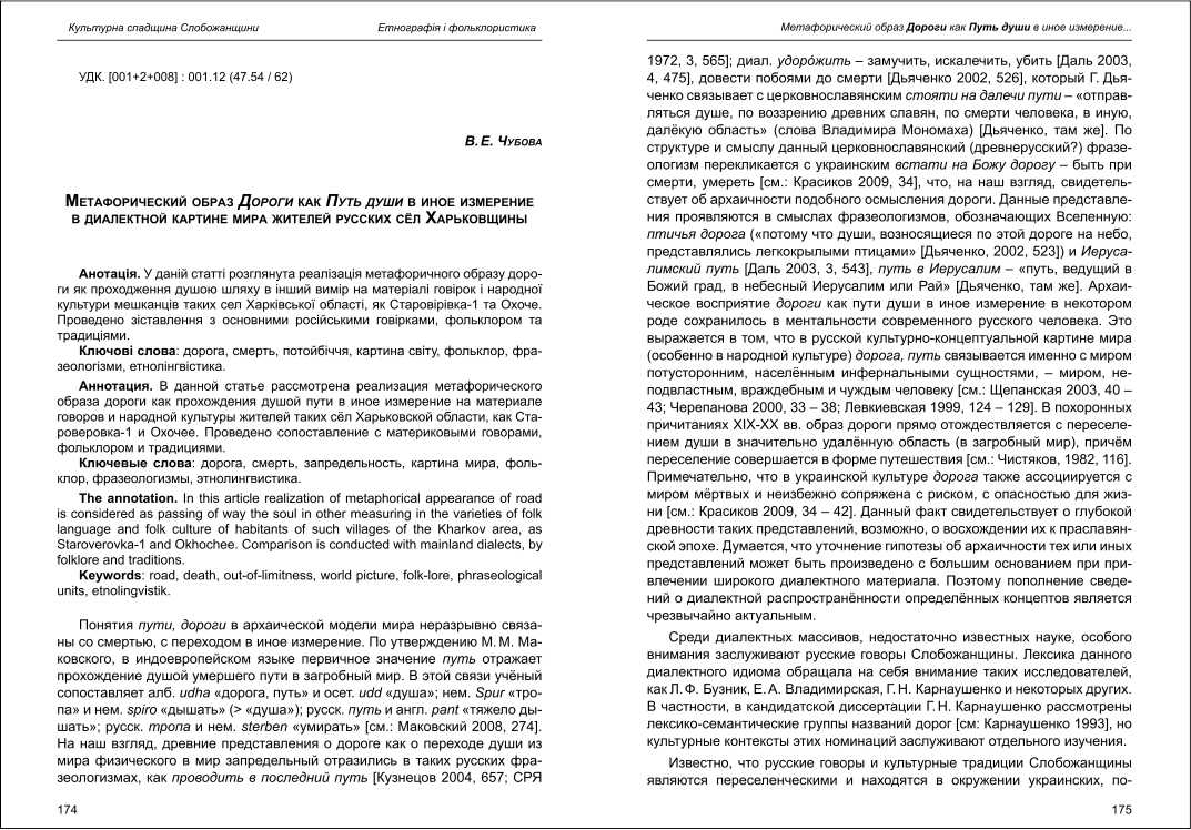 | Назва статті: | Метафорический образ Дороги как Путь души в иное измерение в диалектной картине мира жителей русских сёл Харьковщины |