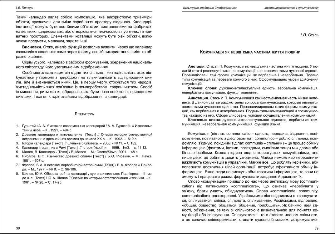 | Бібліографія: | Стась І. П. Комунікація як невід`ємна частина життя людини. Культурна спадщина Слобожанщини: зб. наук. ст. Число 26, Харків : Курсор, 2012. C. 39–42 |