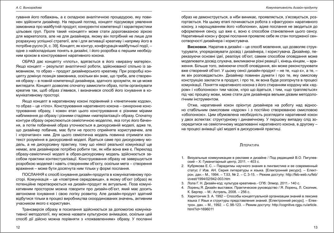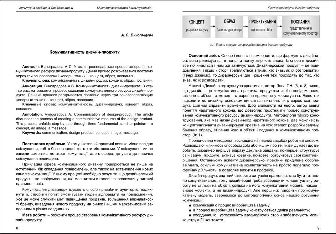 | Бібліографія: | Виноградова А. С. Комунікативність дизайн-продукту. Культурна спадщина Слобожанщини: зб. наук. ст. Число 26, Харків : Курсор, 2012. C. 8–13 , іл. |