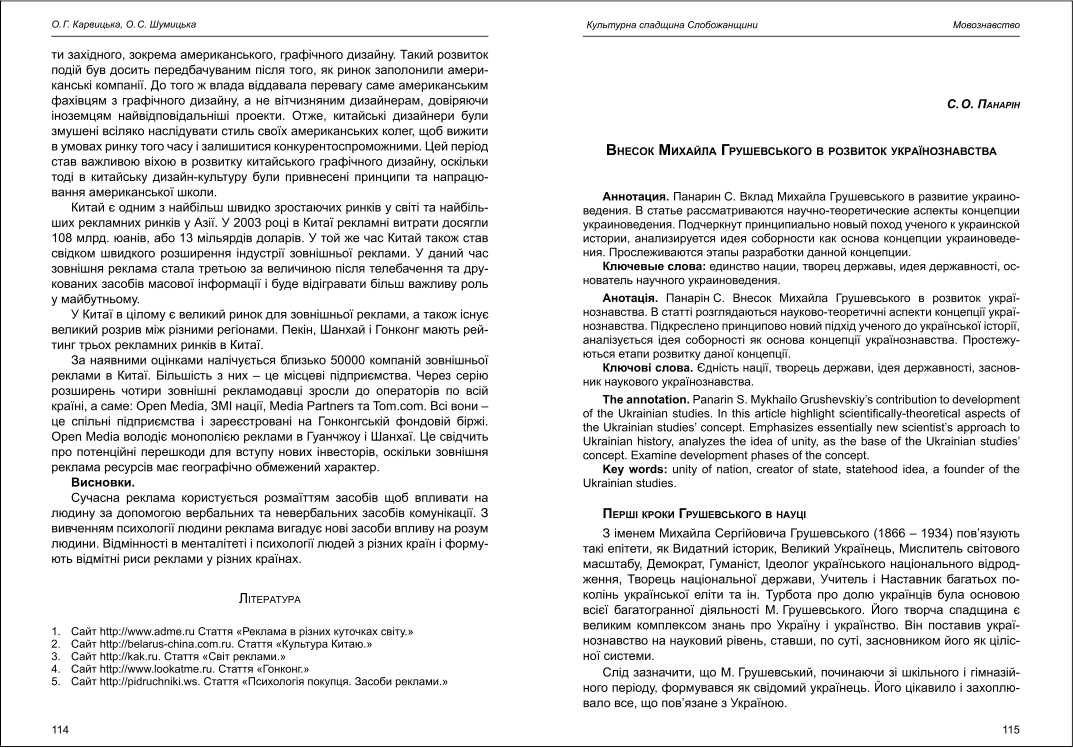 | Бібліографія: | Панарін С. О. Внесок Михайла Грушевського в розвиток українознавства. Культурна спадщина Слобожанщини: зб. наук. ст. Число 26, Харків : Курсор, 2012. C. 115–120 |