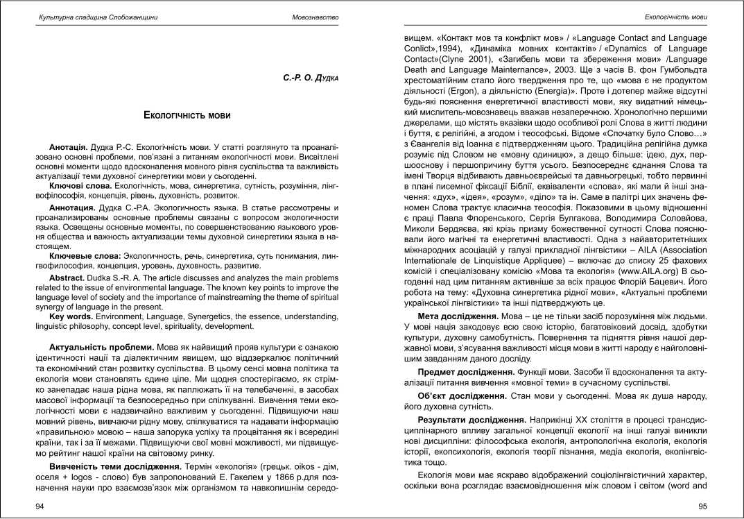 | Бібліографія: | Дудка С. О. Екологічність мови. Культурна спадщина Слобожанщини: зб. наук. ст. Число 26, Харків : Курсор, 2012. C. 94–98 |