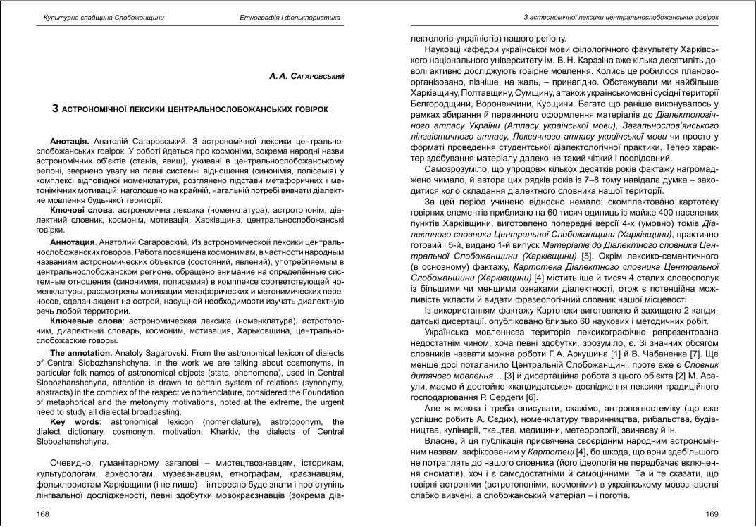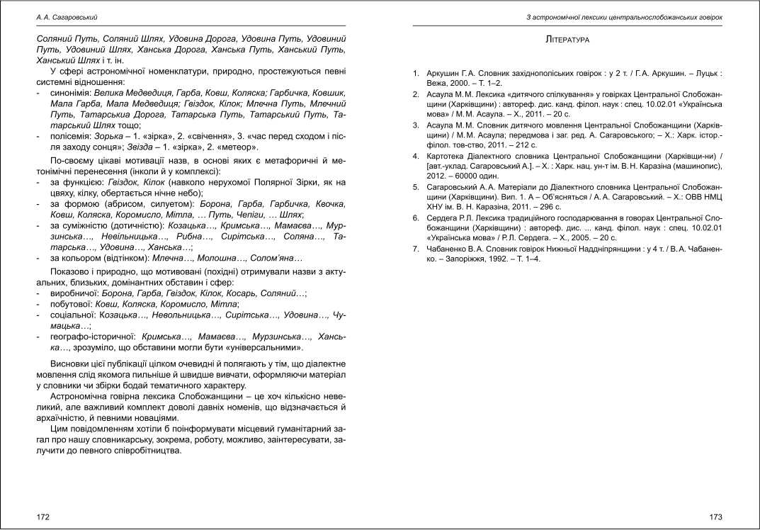 | Бібліографія: | Сагаровський А. А. З астрономічної лексики центральнослобожанських говірок. Культурна спадщина Слобожанщини: зб. наук. ст. Число 26, Харків : Курсор, 2012. C. 168–173 |