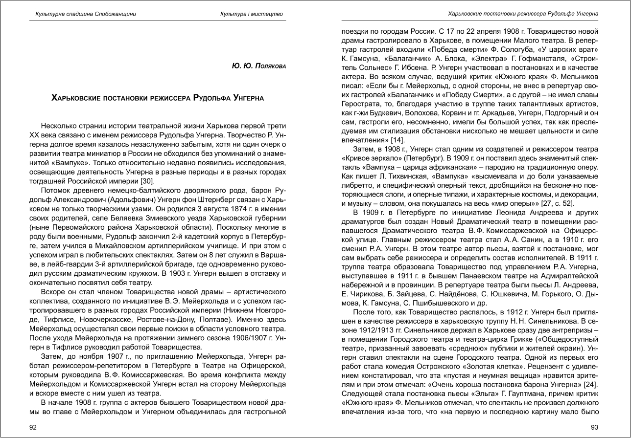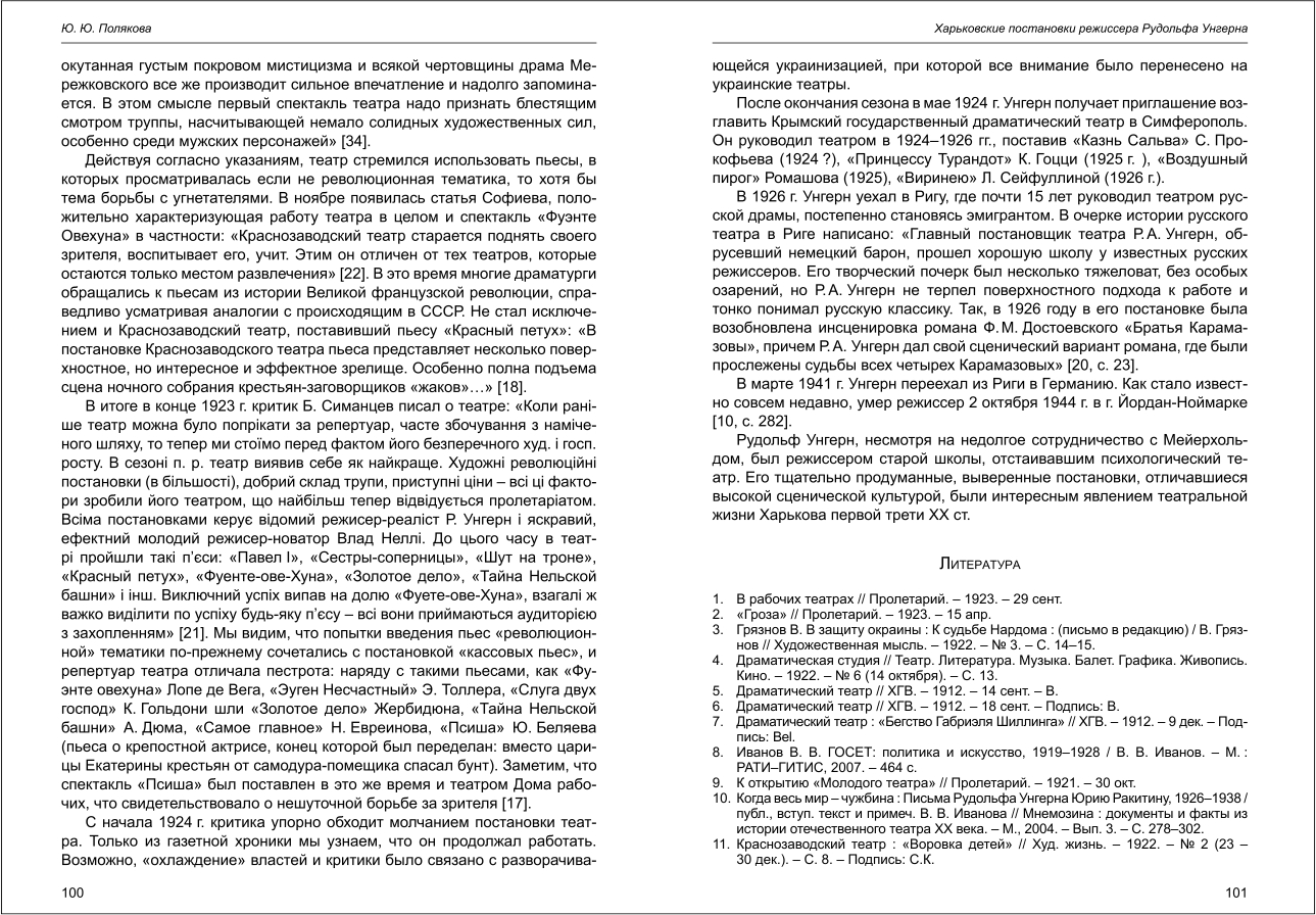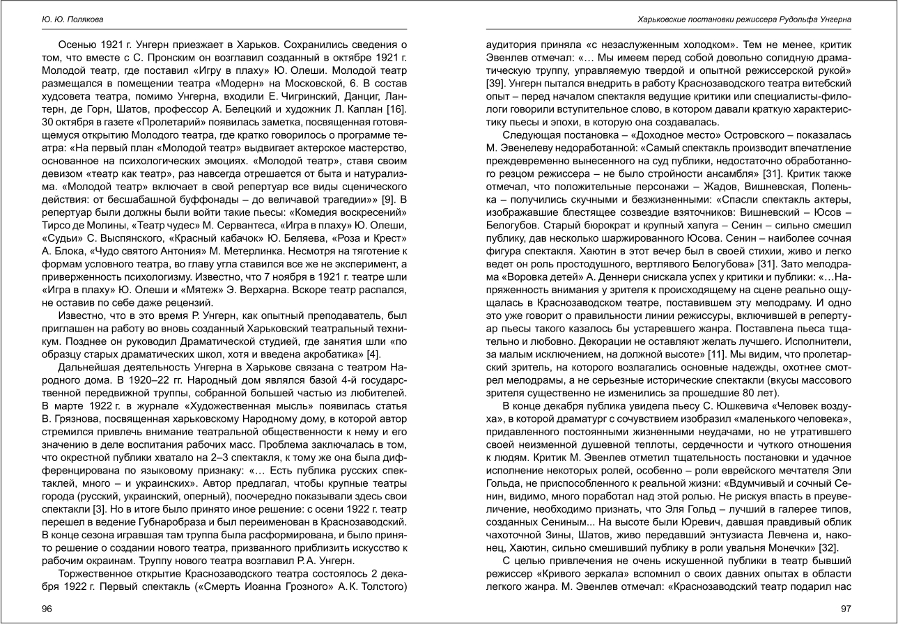 | Бібліографія: | Полякова Ю. Ю. Харьковские постановки режиссера Рудольфа Унгерна. Культурна спадщина Слобожанщини: зб. наук. ст. Число 27, Харків : Курсор, 2013. C. 92–102 |