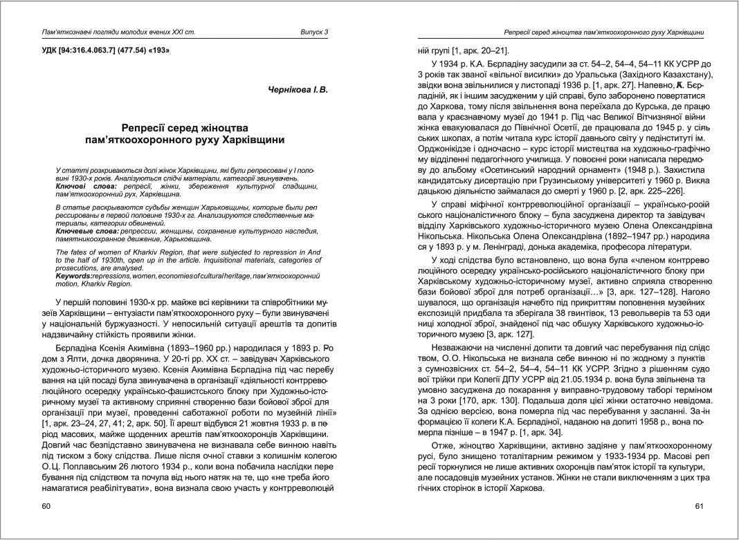 | Назва статті: | Репресії серед жіноцтва пам'яткоохоронного руху Харківщини |