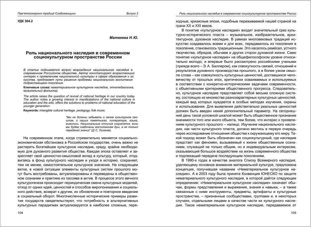 | Назва статті: | Роль национального наследия в современном социокультурном пространстве России |