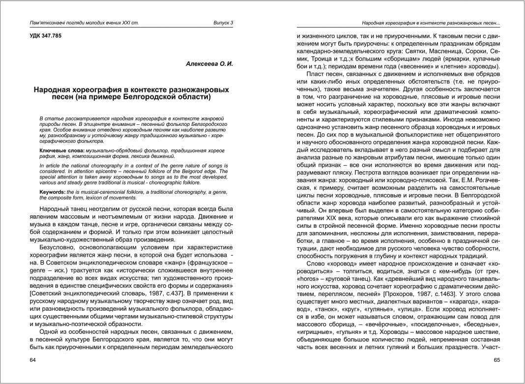 | Бібліографія: | Алєксеєва О. І. Народная хореография в контексте разножанровых песен (на примере Белгородской области). Пам'яткознавчі погляди молодих вчених XXI ст.: зб. наук. ст. Випуск III, Харків : Курсор, 2013. C. 64–69 |