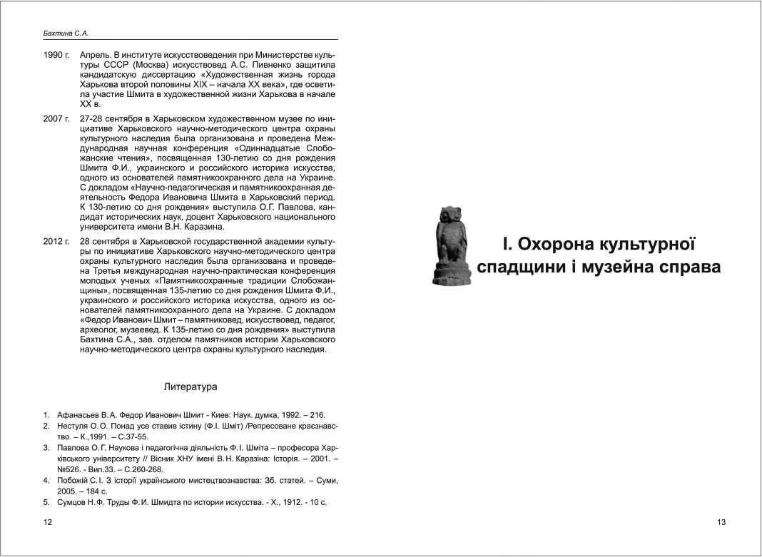 | Бібліографія: | Бахтіна С. А. Шмит Федор Иванович. Пам'яткознавчі погляди молодих вчених XXI ст.: зб. наук. ст. Випуск III, Харків : Курсор, 2013. C. 4–12 |
