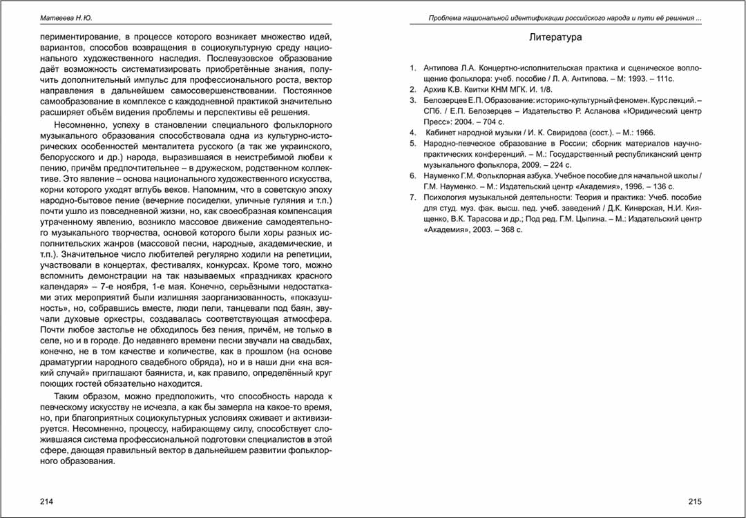 | Бібліографія: | Матвєєва Н. Ю. Проблема национальной идентификации российского народа и пути её решения через внедрение русского музыкально-поэтического творчества в современное культурно-образовательное пространство. Пам'яткознавчі погляди молодих вчених XXI ст.: зб. наук. ст. Випуск IV, Харків : Курсор, 2013. C. 207–215 |