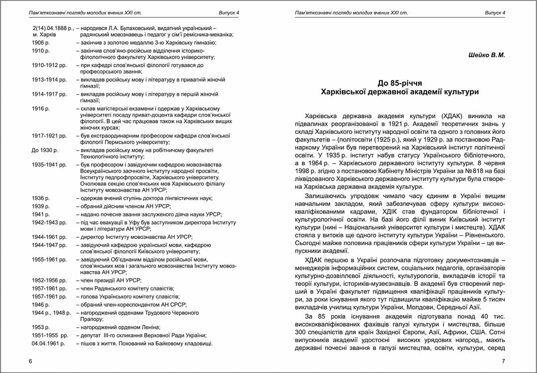 | Бібліографія: | Шейко В. М. До 85-річчя Харківської державної академії культури. Пам'яткознавчі погляди молодих вчених XXI ст.: зб. наук. ст. Випуск IV, Харків : Курсор, 2013. C. 7–9 |