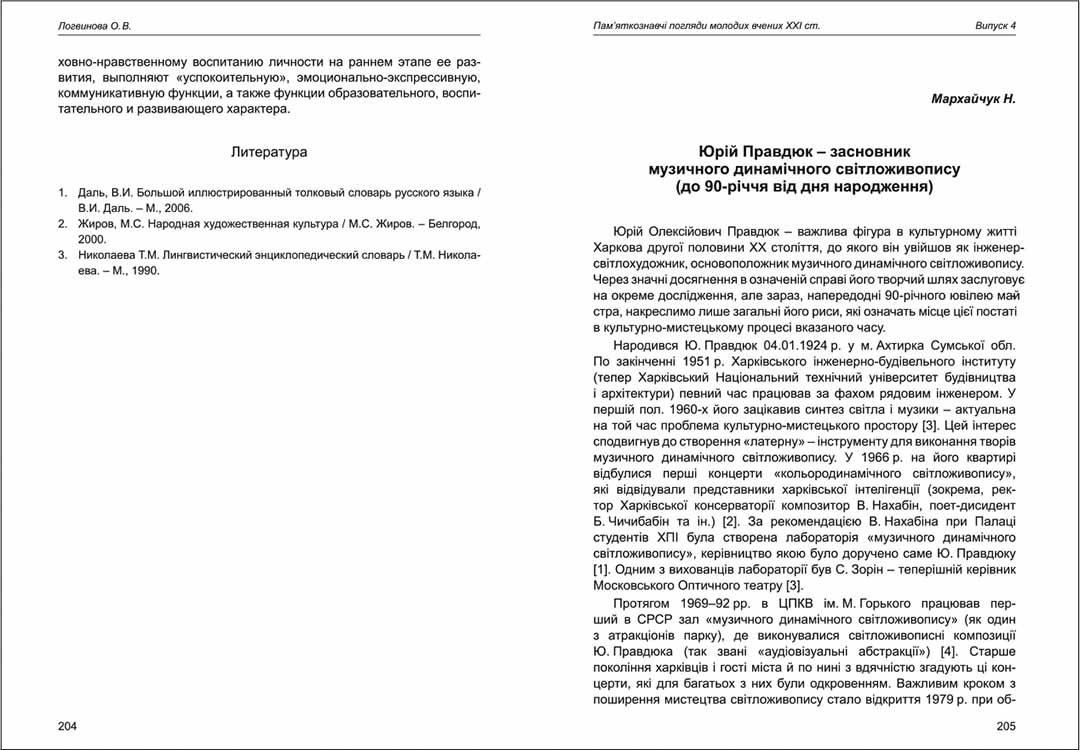 | Назва статті: | Юрій Правдюк - засновник музичного динамічного світложивопису (до 90-річчя від дня народження) |