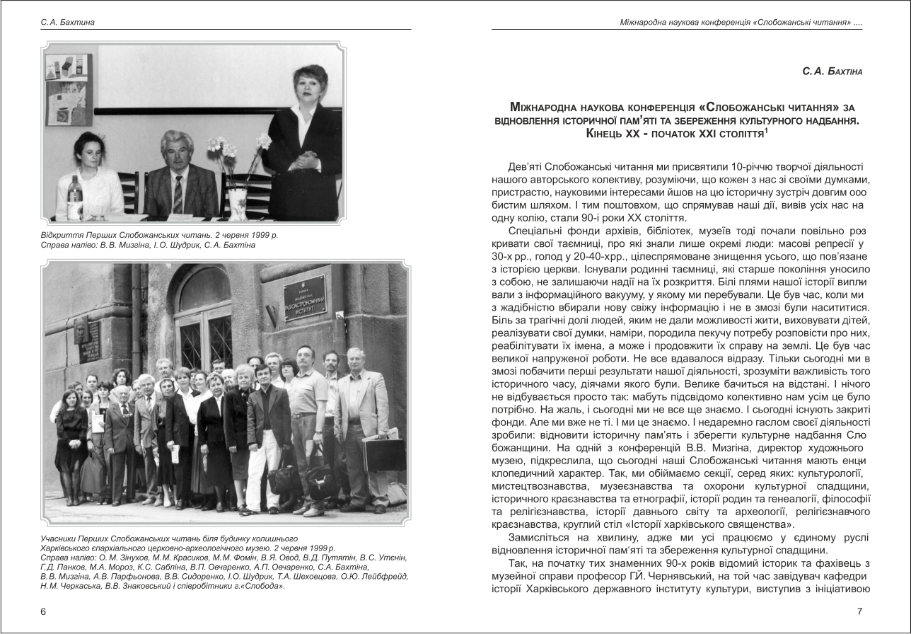 | Назва статті: | Міжнародна наукова конференція "Слобожанські читання" за відновлення історичної пам'яті та збереження культурного надбання. Кінець 20 - початок 21 століття. |