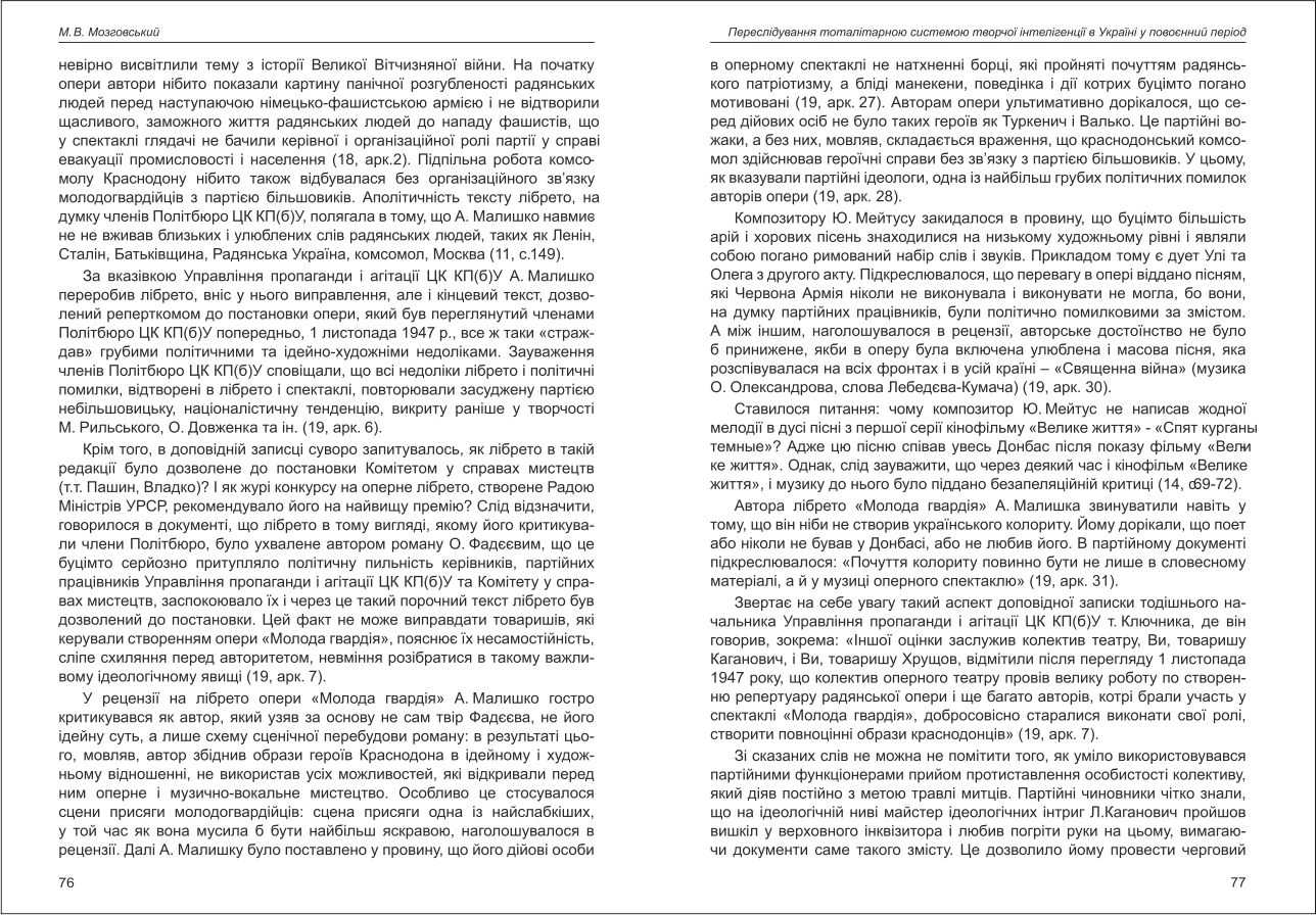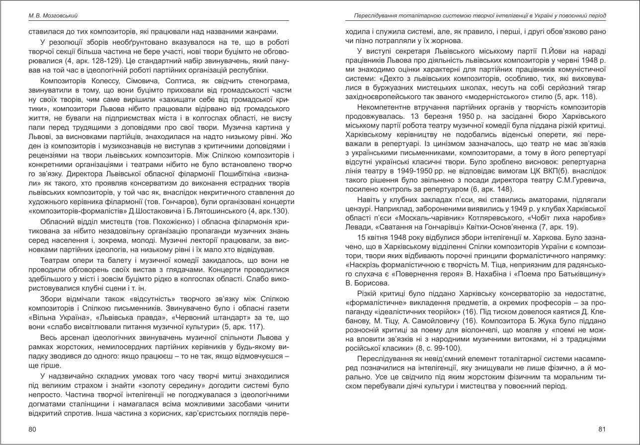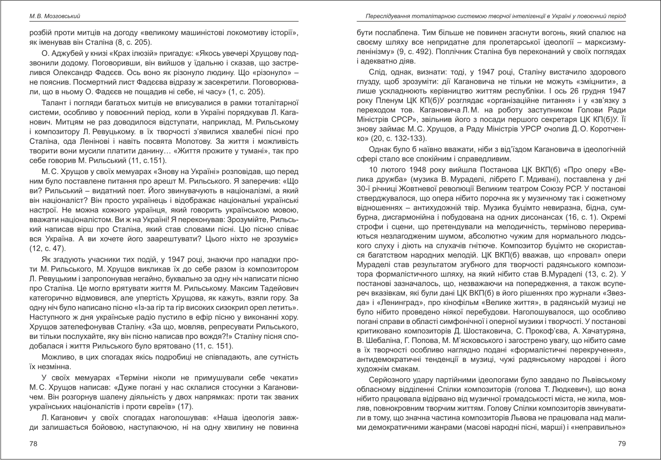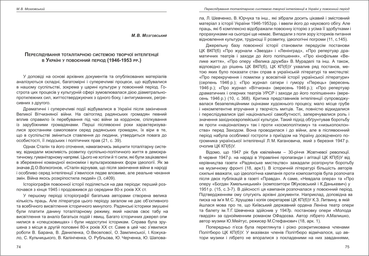 | Бібліографія: | Мозговський М. В. Переслідування тоталітарною системою творчої інтелігенції в Україні у повоєнний період (1946-1953 рр.). Праці пам'яткознавців: зб. наук. ст. Випуск III Частина II, Харків : Курсор, 2014. C. 74–82 |