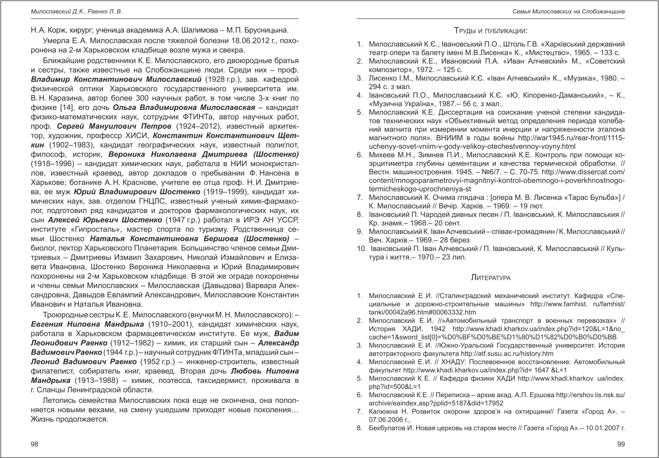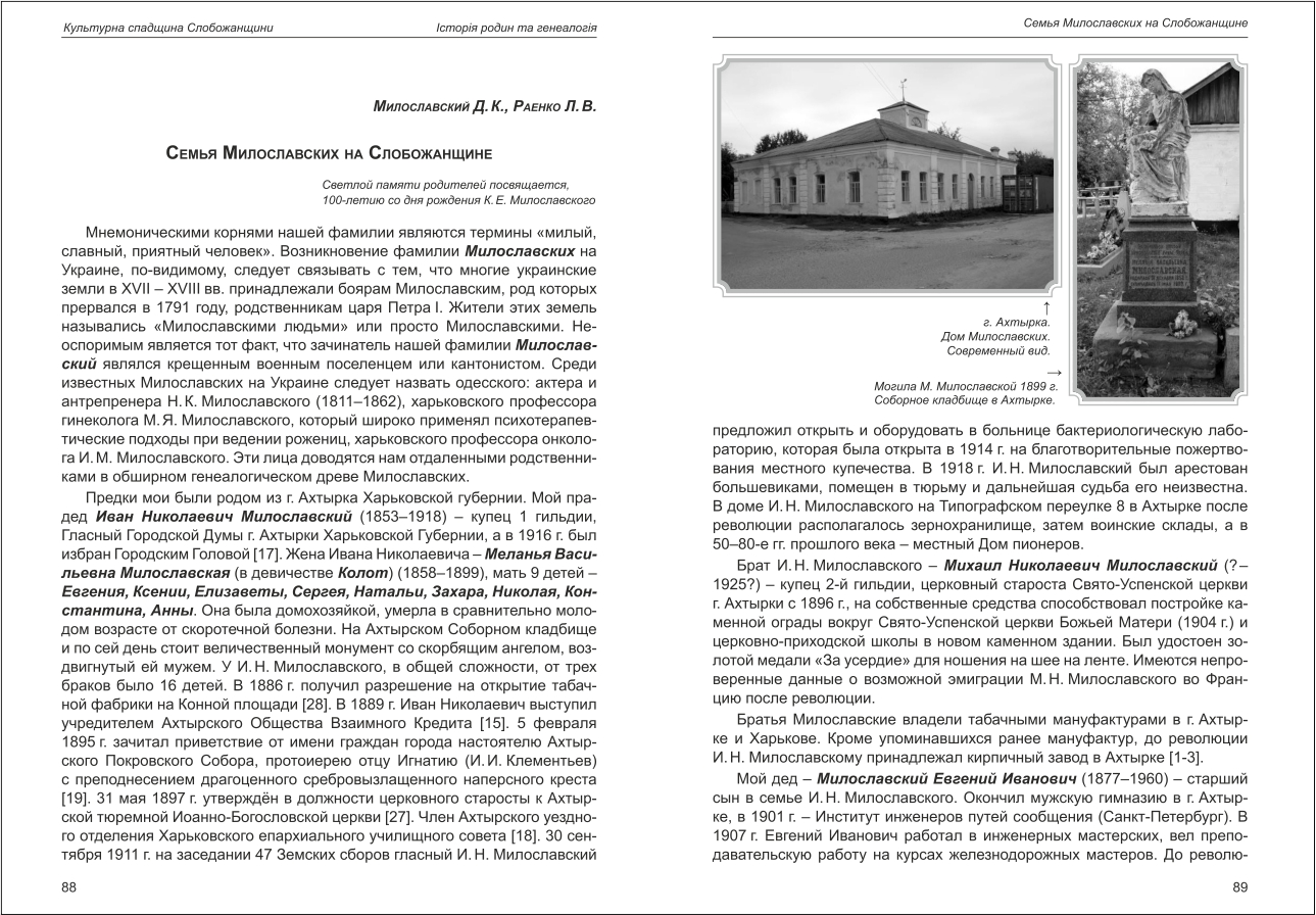 | Бібліографія: | Милославський Д. К., Раєнко Л. В. Семья Милославских на Слобожанщине. Культурна спадщина Слобожанщини: зб. наук. ст. Число 28, Харків : Курсор, 2014. C. 88–100 , іл. |