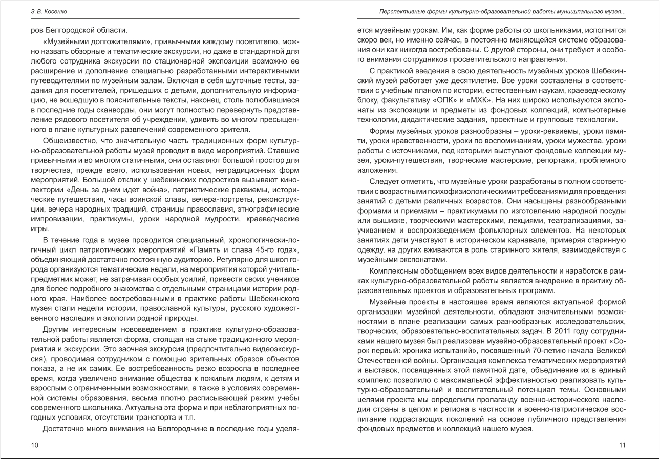 | Назва статті: | Перспективные формы культурно-образовательной работы муниципального музея: из опыта Шебекинского историко-художественного музея |