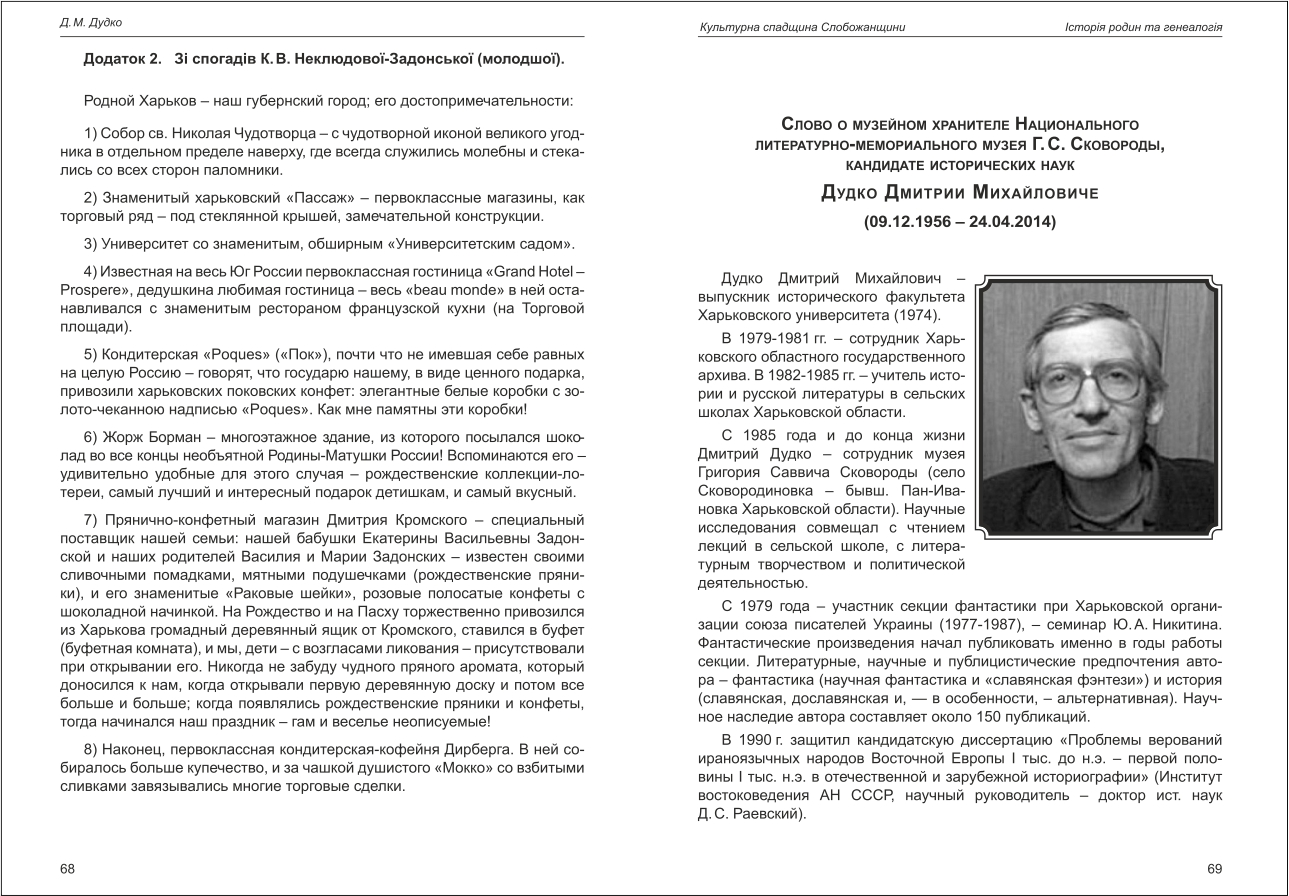 | Назва статті: | Слово о музейном хранителе Национального литературно-мемориального музея Г. С. Сковороды, кандидате исторических наук Дудко Дмитрии Михайловиче (09.12.1956 - 24.04.2014) |