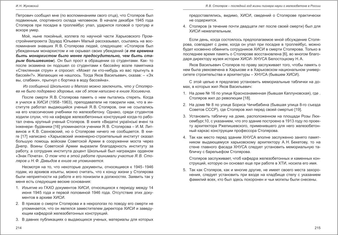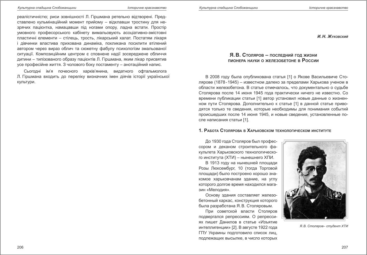 | Бібліографія: | Жуковський І. М. Я. В. Столяров - последний год жизни пионера науки о железобетоне в России. Культурна спадщина Слобожанщини: зб. наук. ст. Число 28, Харків : Курсор, 2014. C. 207–216 , іл. |