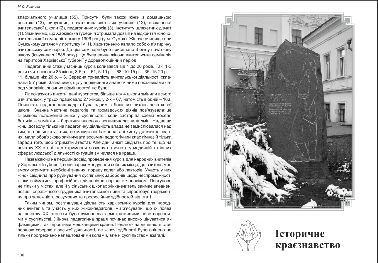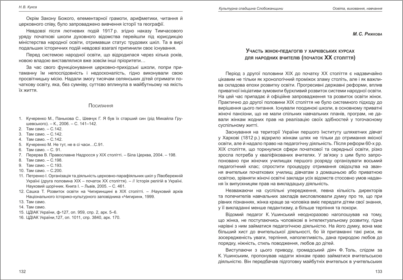 | Бібліографія: | Рижкова М. С. Участь жінок-педагогів у харківських курсах для народних вчителів (початок ХХ століття). Культурна спадщина Слобожанщини: зб. наук. ст. Число 28, Харків : Курсор, 2014. C. 133–136 |