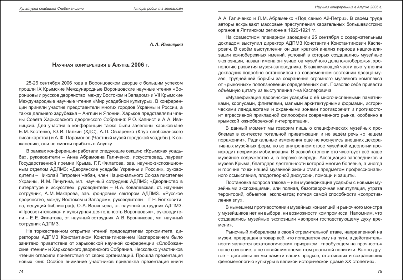 | Бібліографія: | Іваницький О. О. Научная конференция в Алупке 2006 г. Культурна спадщина Слобожанщини: зб. наук. ст. Число 28, Харків : Курсор, 2014. C. 74–76 |