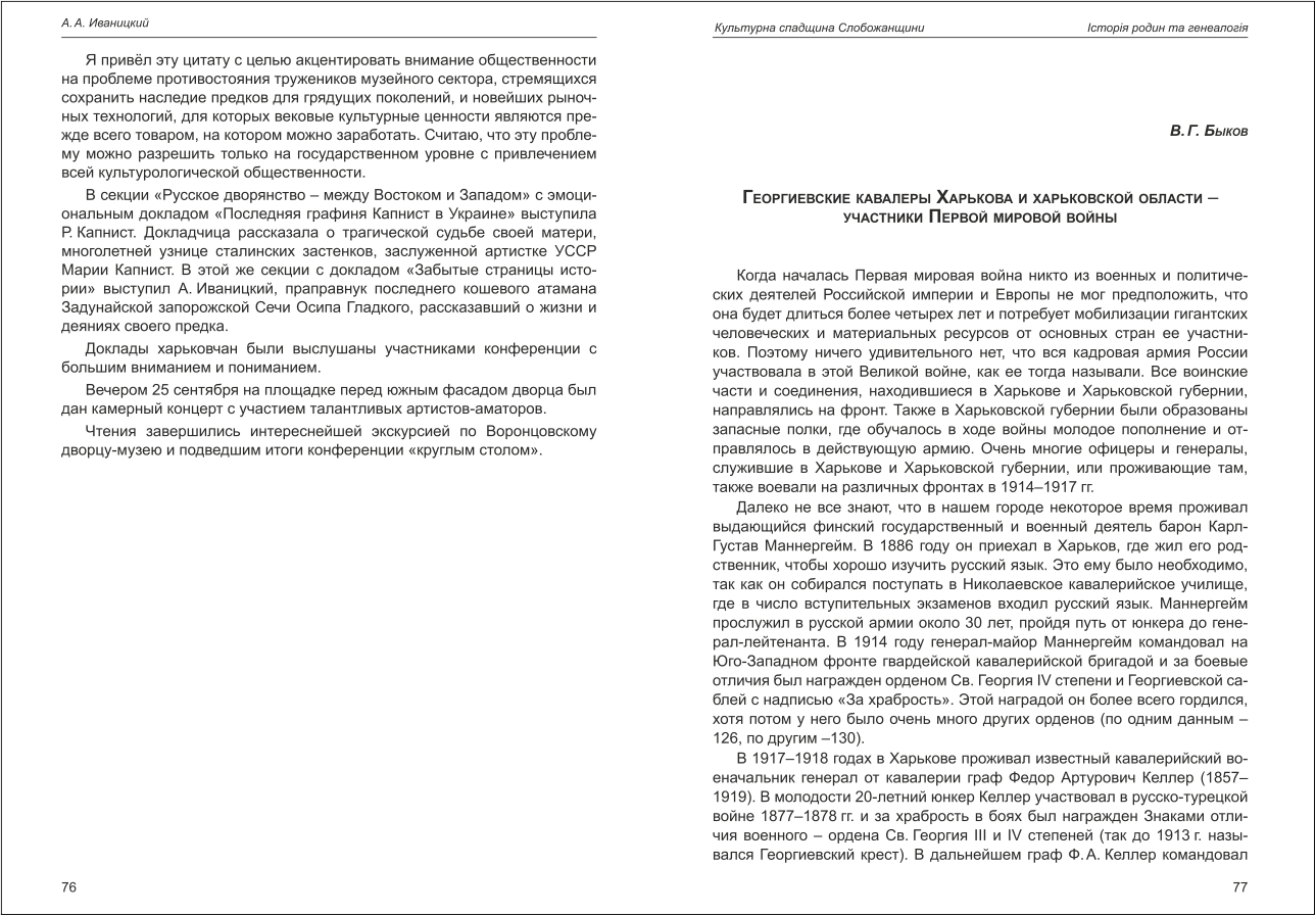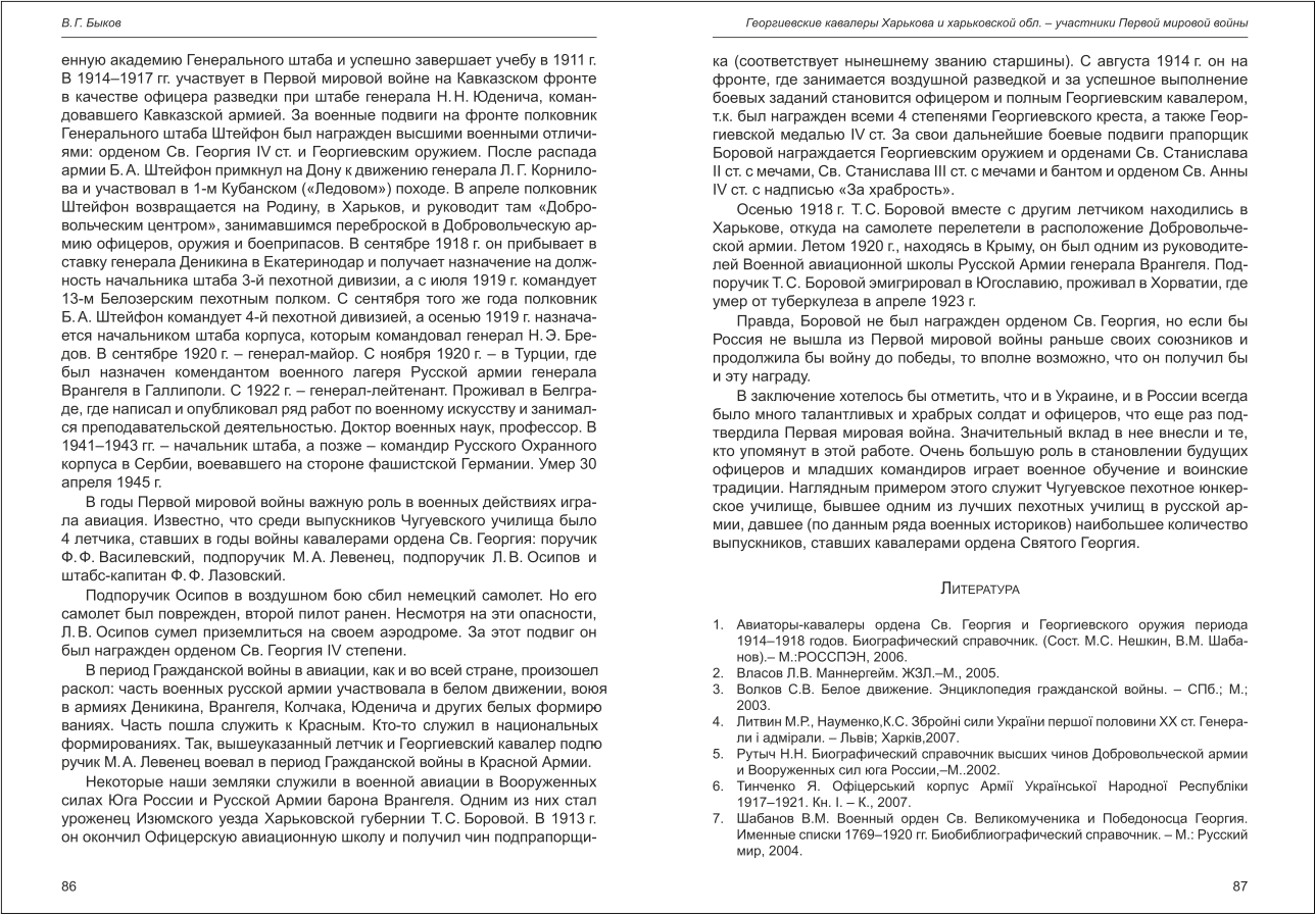 Биков В. Г. Георгиевские кавалеры Харькова и харьковской области - участники Первой мировой войны.