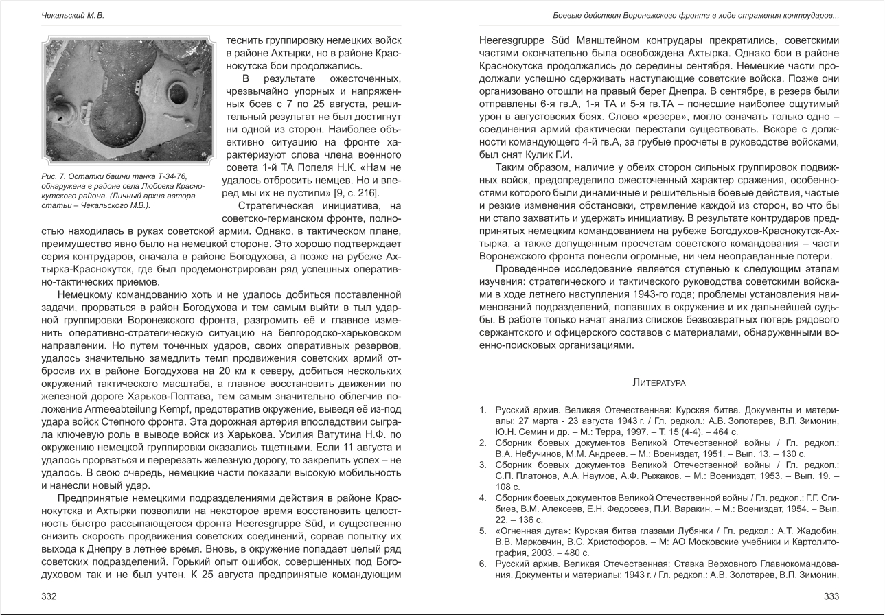 | Назва статті: | Боевые действия Воронежского фронта в ходе отражения контрударов, оперативных резервов группы армий "Юг" на рубеже Богодухов-Краснокутск-Ахтырка в августе 1943 г. |