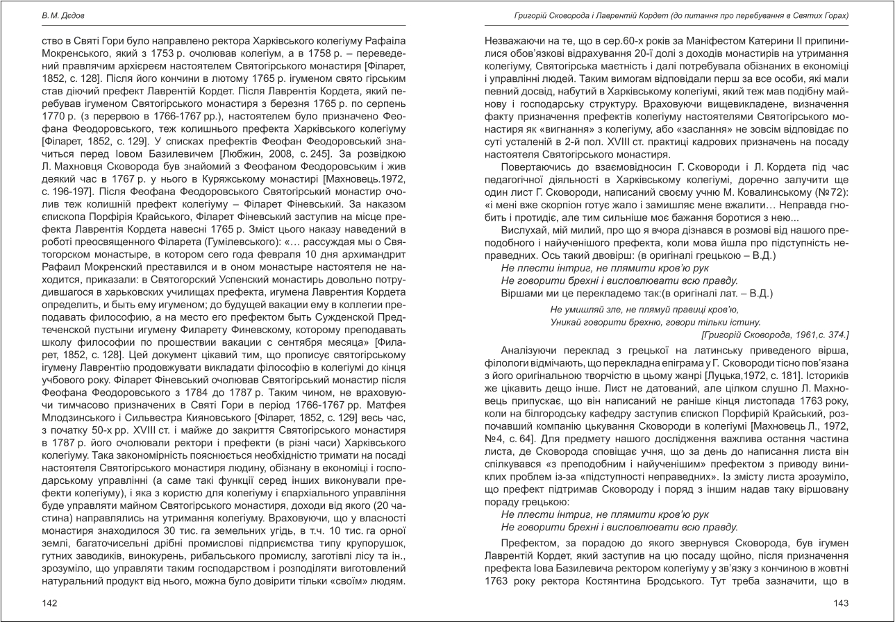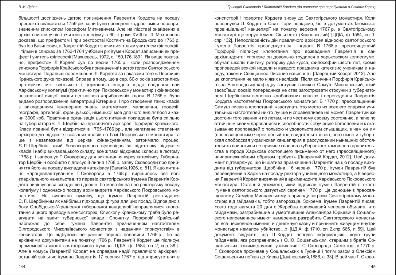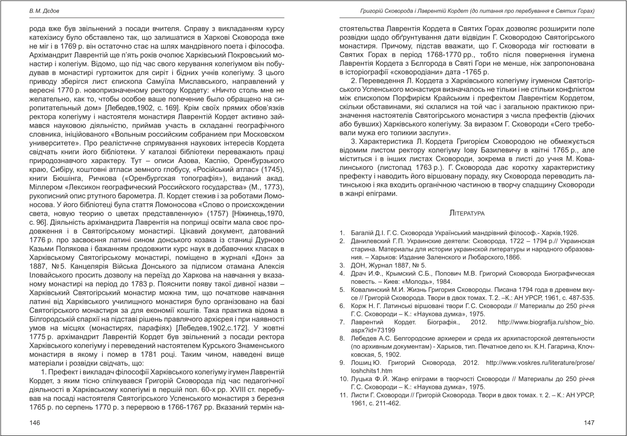 | Бібліографія: | Дєдов В. М. Григорій Сковорода і Лаврентій Кордет (до питання про перебування в Святих Горах). Культурна спадщина Слобожанщини: зб. наук. ст. Число 28, Харків : Курсор, 2014. C. 139–148 |