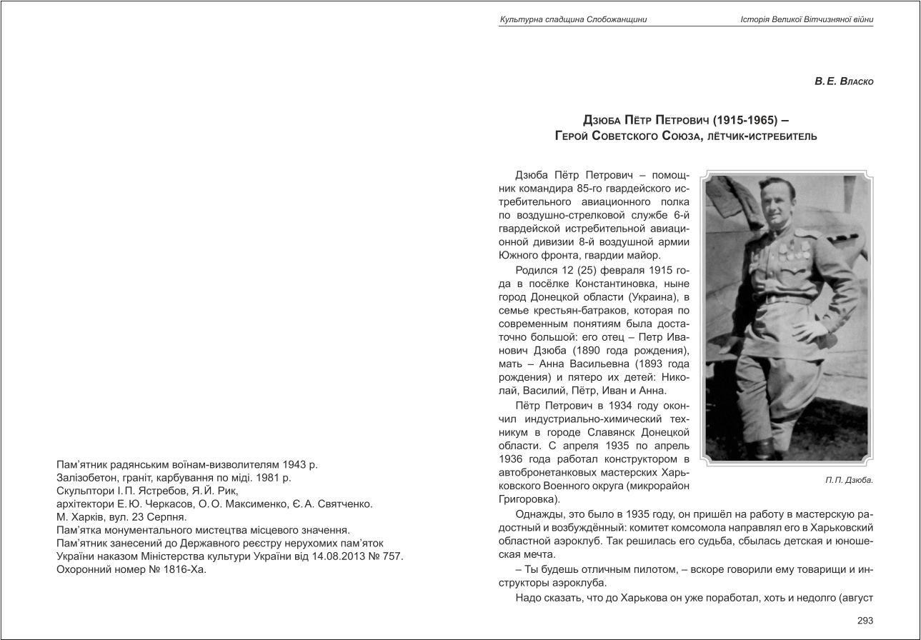 | Назва статті: | Дзюба Пётр Петрович (1915-1965) - Герой Советского Союза, лётчик-истребитель |