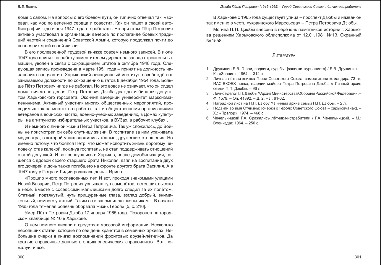 | Бібліографія: | Власко В. Є. Дзюба Пётр Петрович (1915-1965) - Герой Советского Союза, лётчик-истребитель. Культурна спадщина Слобожанщини: зб. наук. ст. Число 28, Харків : Курсор, 2014. C. 293–301 , іл. |