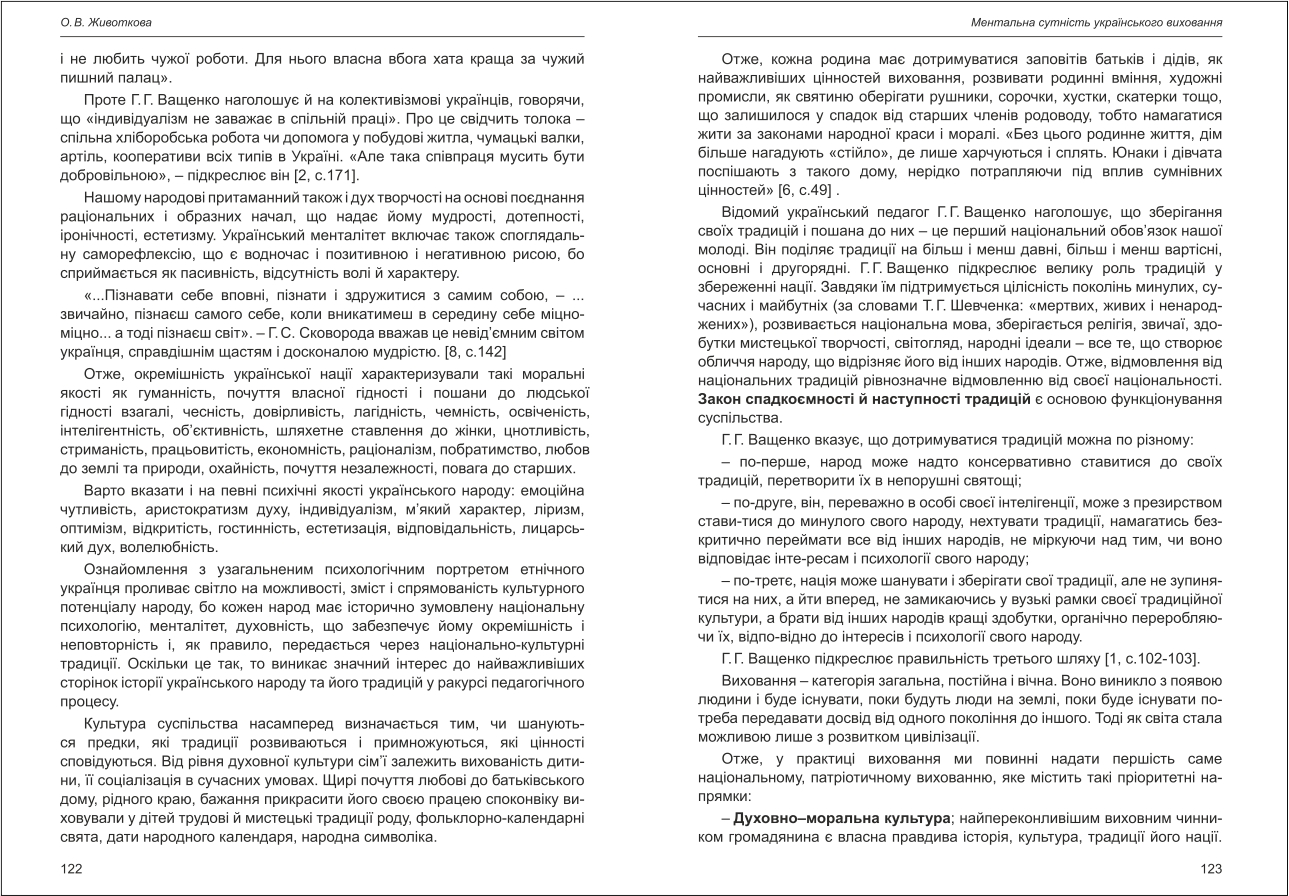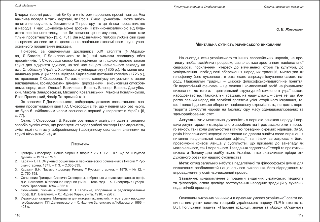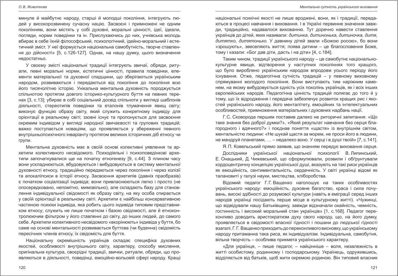 | Бібліографія: | Животкова О. В. Ментальна сутність українського виховання. Культурна спадщина Слобожанщини: зб. наук. ст. Число 28, Харків : Курсор, 2014. C. 119–124 |