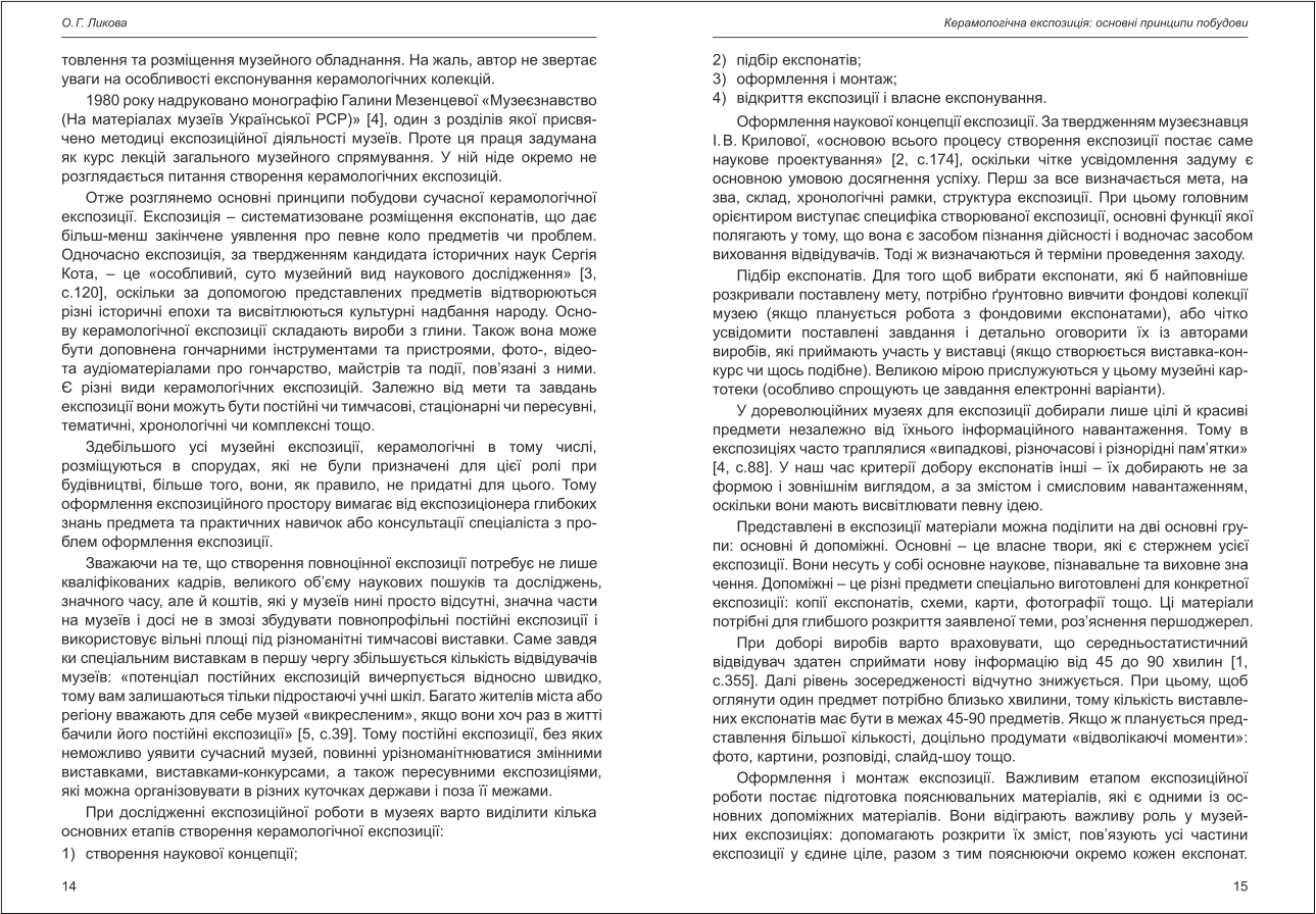 | Бібліографія: | Ликова О. Г. Керамологічна експозиція: основні принципи побудови. Культурна спадщина Слобожанщини: зб. наук. ст. Число 28, Харків : Курсор, 2014. C. 13–18 |