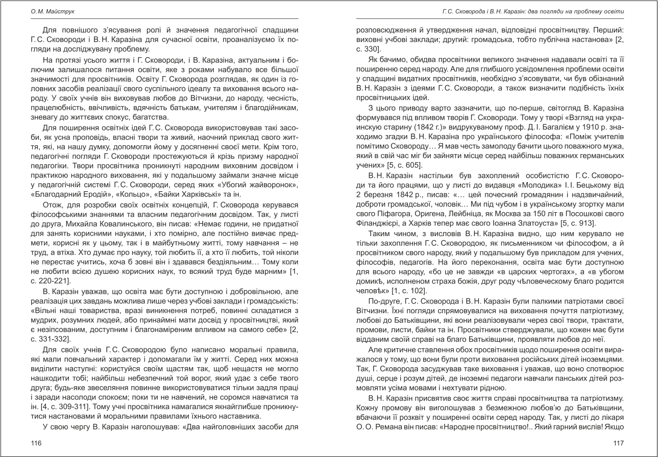 | Назва статті: | Г. С. Сковорода і В. Н. Каразін: два погляди на проблему освіти |
