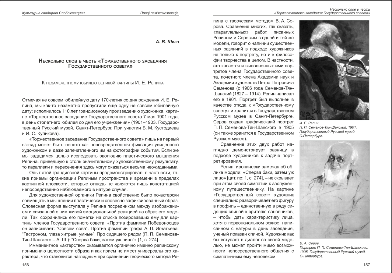 | Назва статті: | Несколько слов в честь "Торжественного заседания Государственного совета". К незамеченному юбилею великой картины И.Е. Репина |