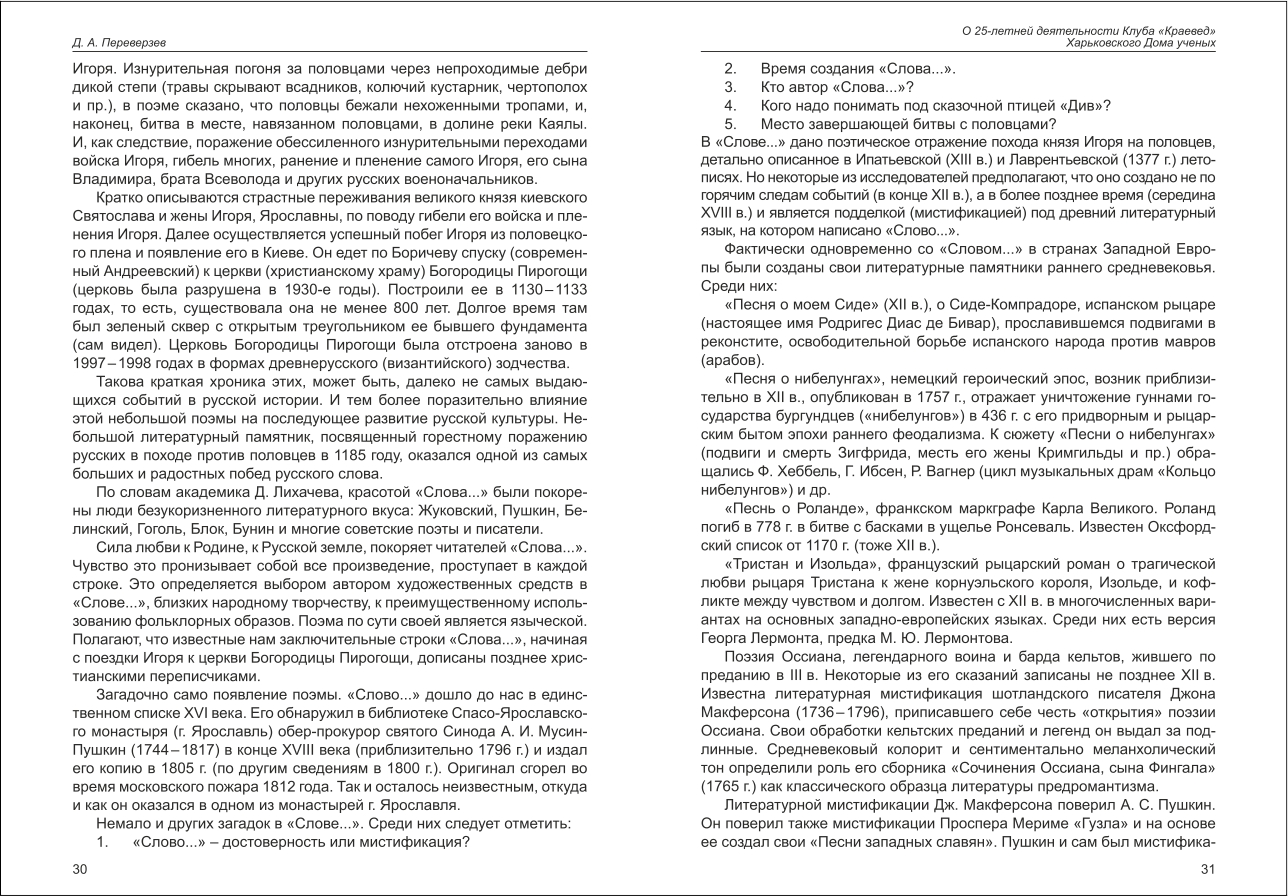 | Бібліографія: | Переверзєв Д. А. О 25-летней деятельности Клуба "Краевед" Харьковского Дома ученых. Праці пам'яткознавців: зб. наук. ст. Випуск IV, Харків : Курсор, 2015. C. 22–37 , іл. |