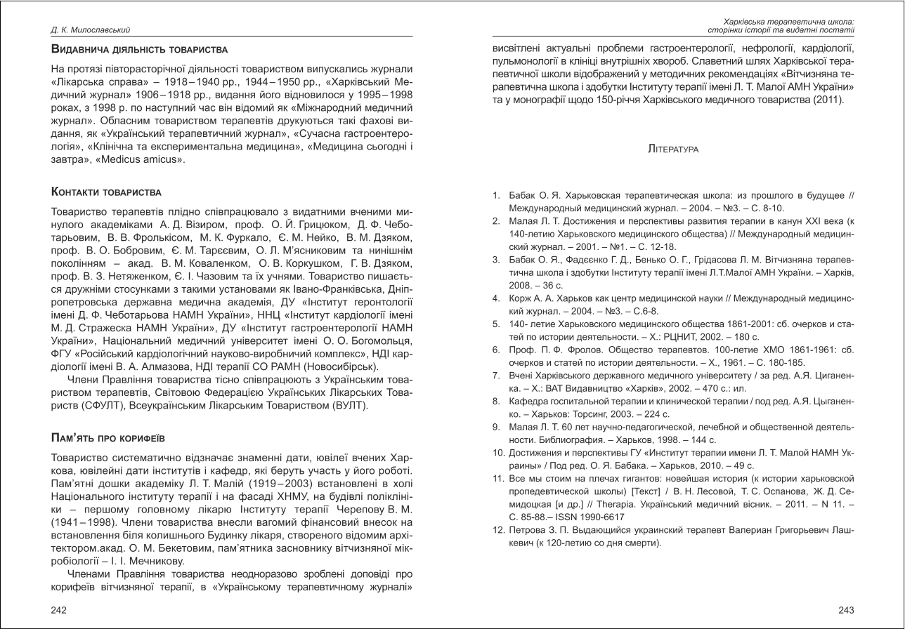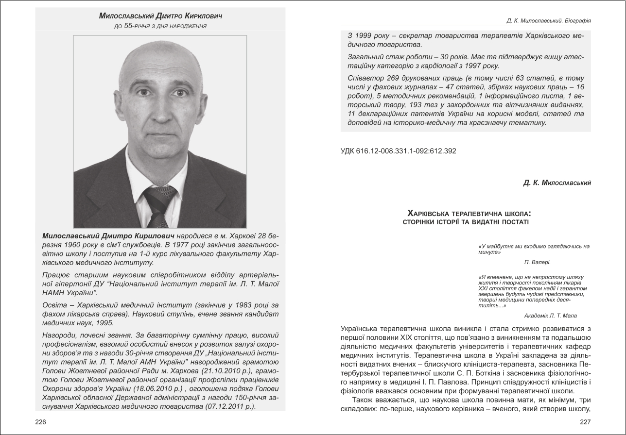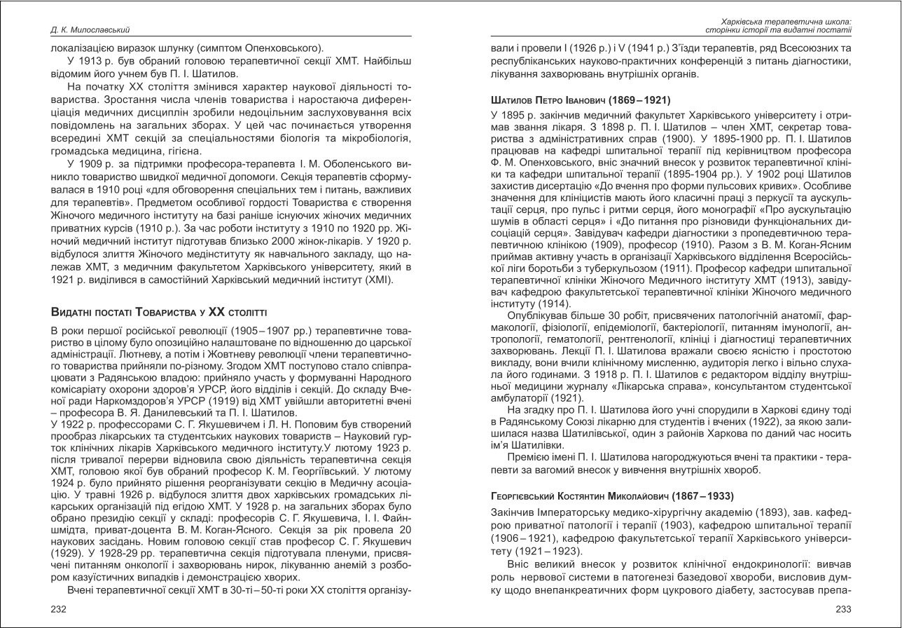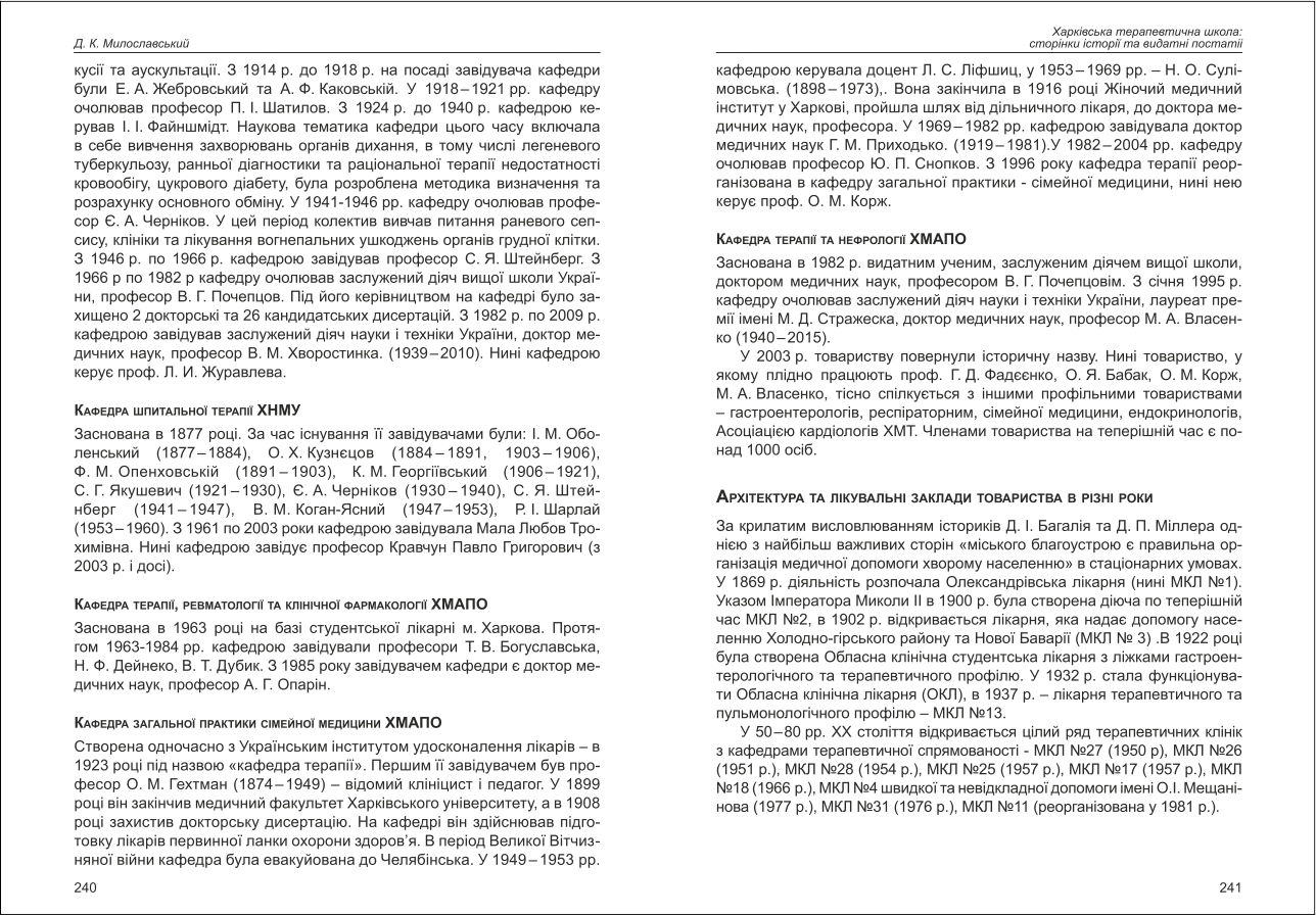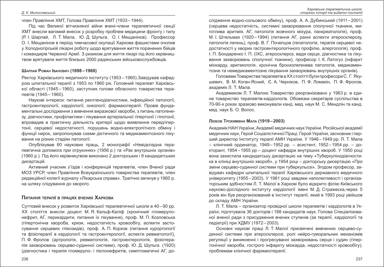 | Бібліографія: | Милославський Д. К. Харківська терапевтична школа: сторінки історії та видатні постаті. Праці пам'яткознавців: зб. наук. ст. Випуск IV, Харків : Курсор, 2015. C. 227–242 , іл. |